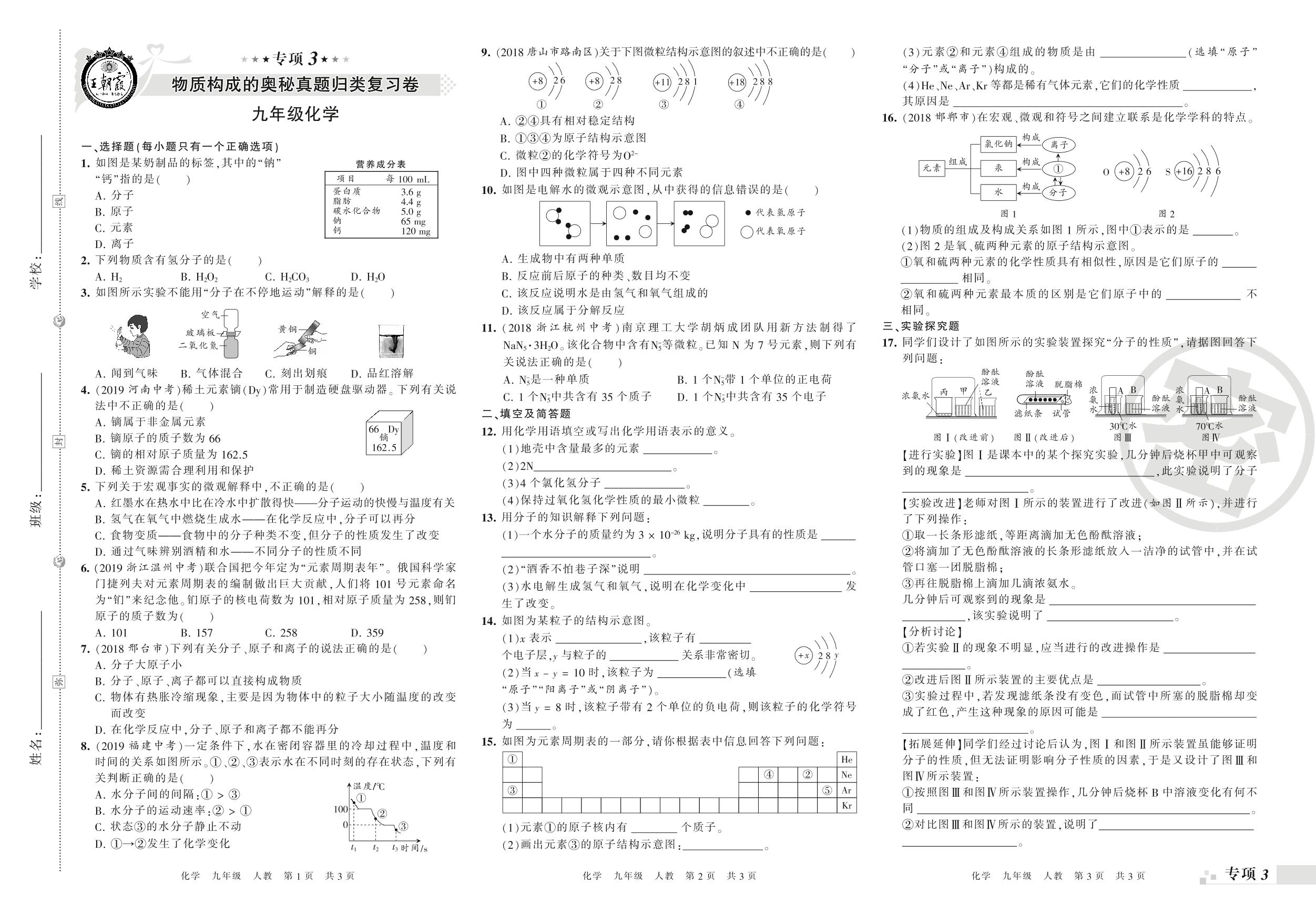 王朝霞期末专项卷——物质构成的奥秘、自然界的水真题归类复习九年级上册化学(人教版)_R21081290034【0】