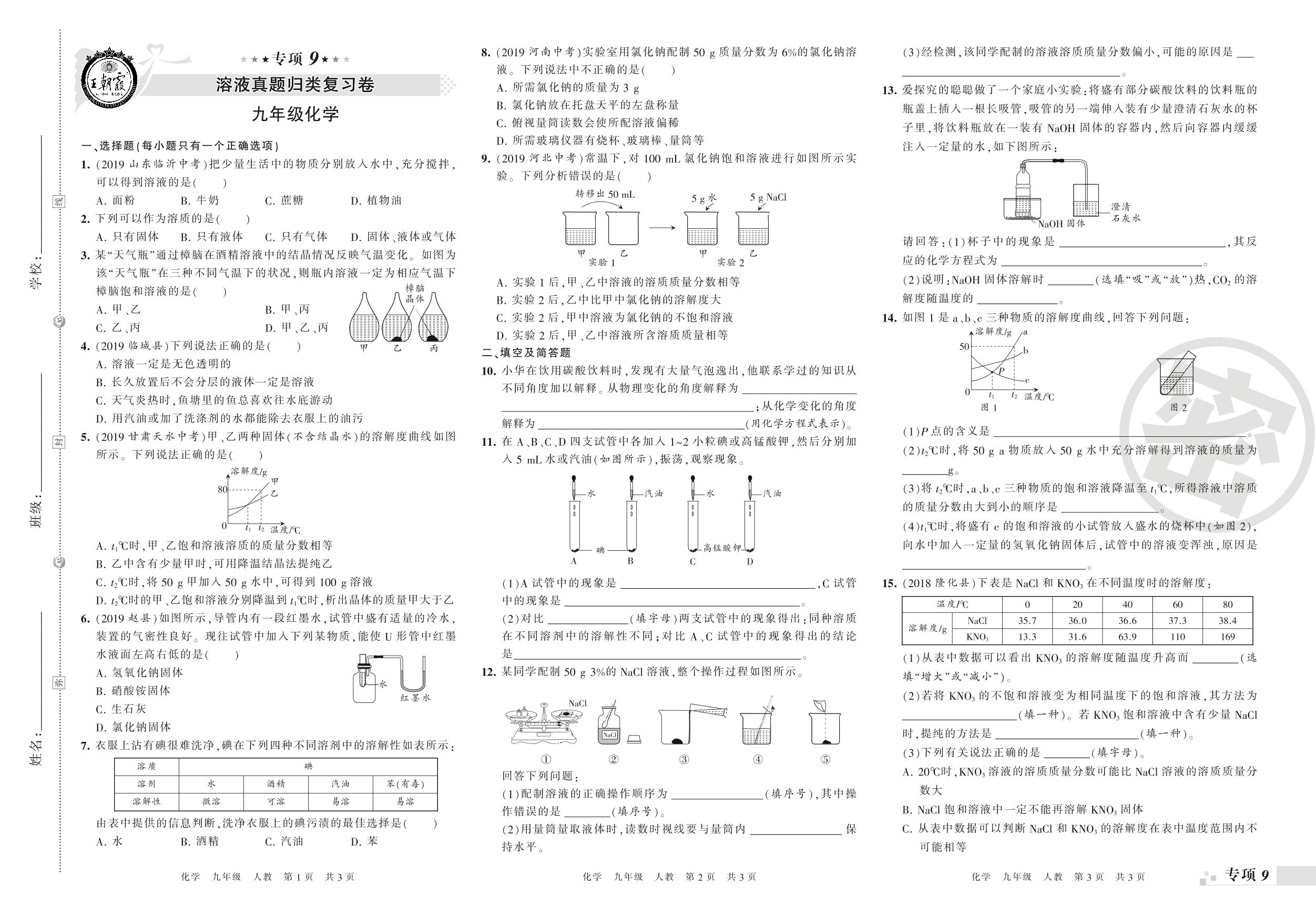 王朝霞期末专项卷——溶液、酸和碱真题归类复习九年级上册化学(人教版)_R21081290107【0】