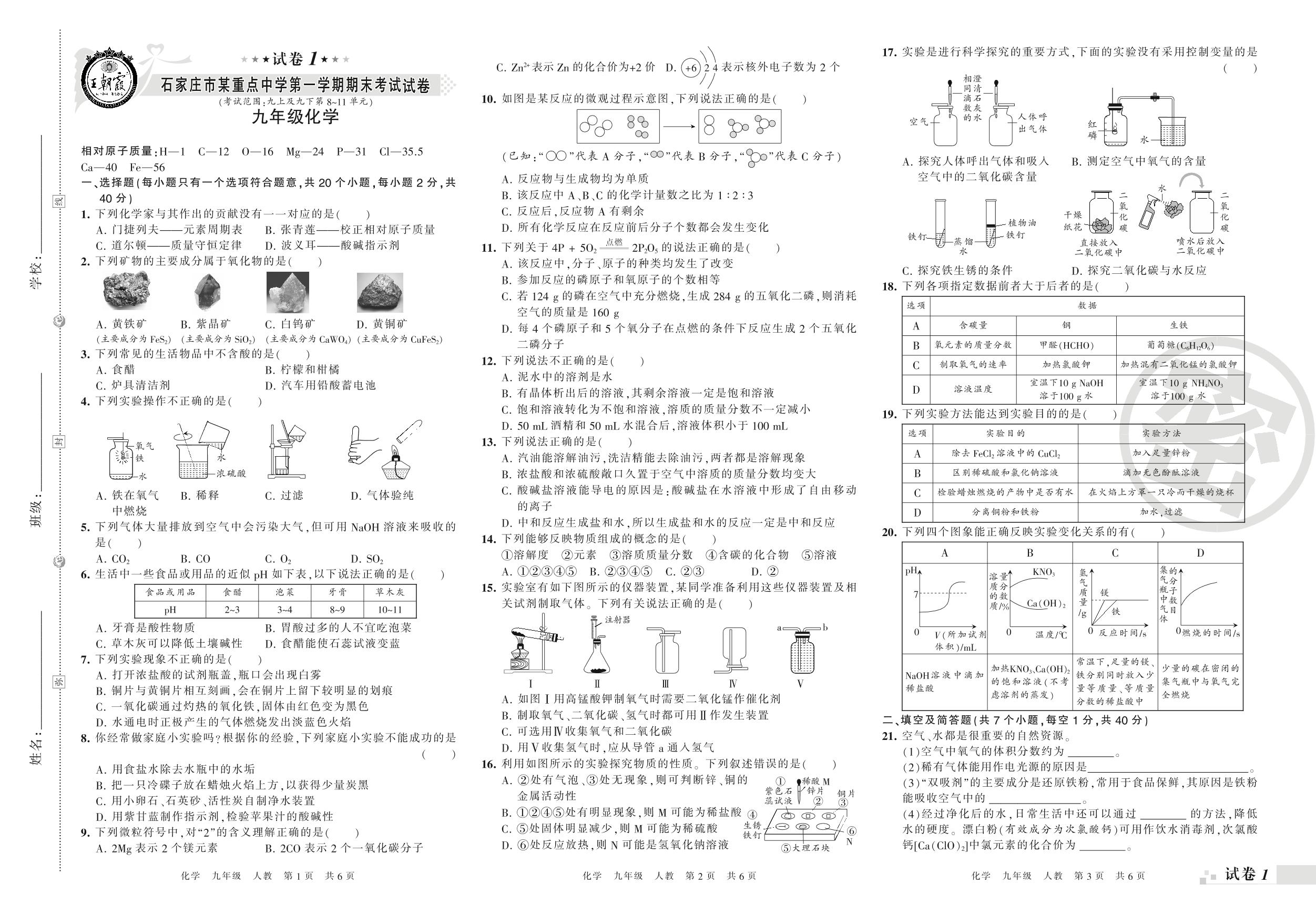 2018-2019学年第一学期石家庄市九年级化学试卷(人教版)【1】