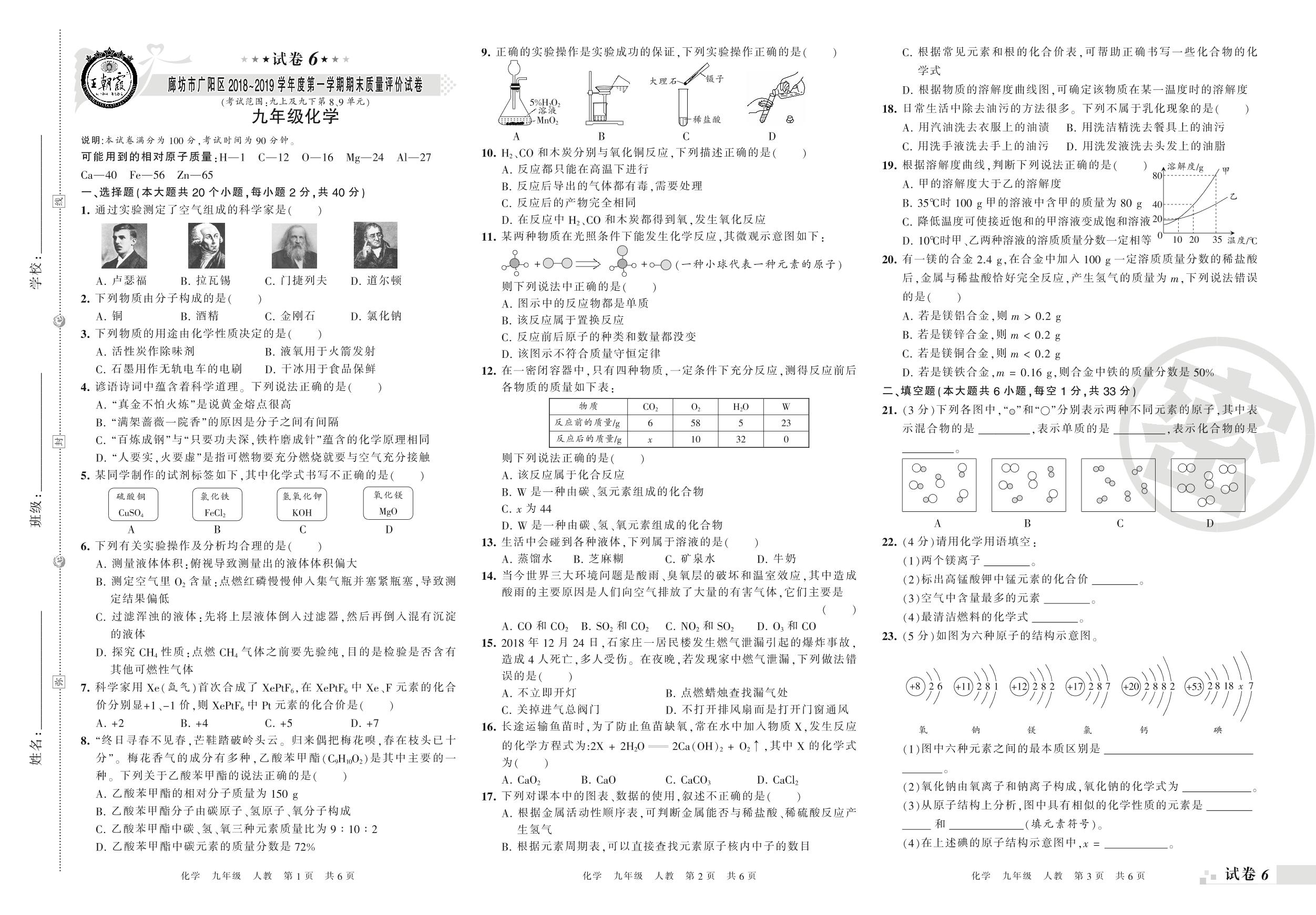 2018-2019学年第一学期廊坊市广阳区九年级化学试卷(人教版)【6】