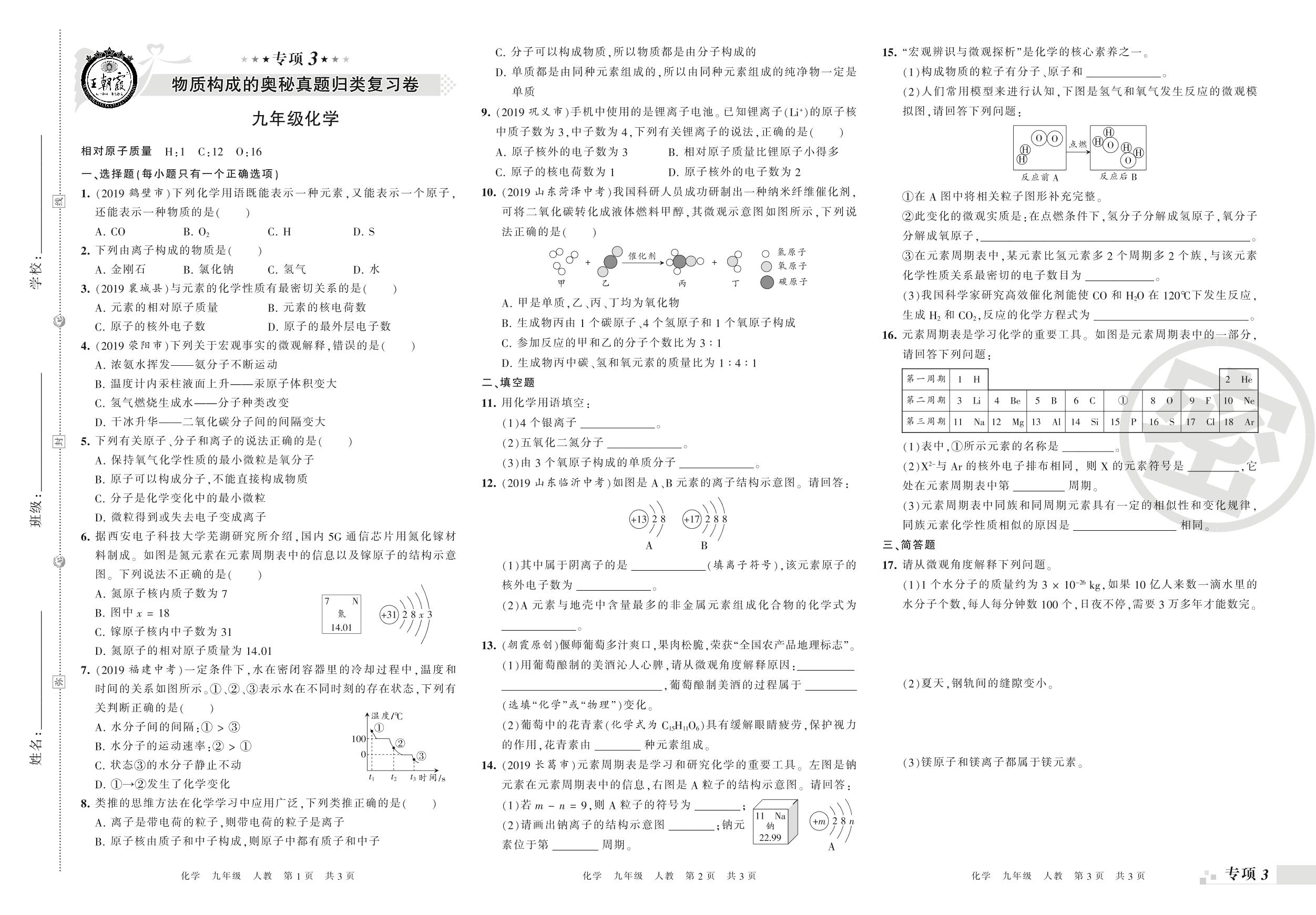 王朝霞期末专项卷——物质构成的奥秘、自然界的水真题归类复习九年级上册化学(人教版)_R21081290251【0】