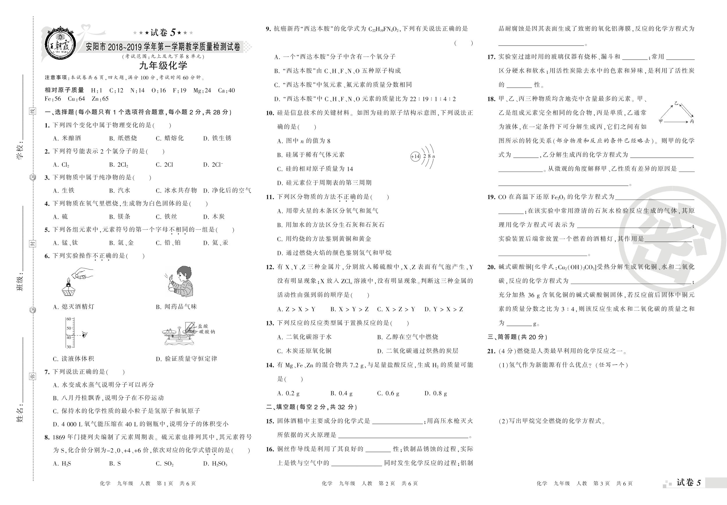 2018-2019学年第一学期安阳市九年级化学试卷(人教版)【5】