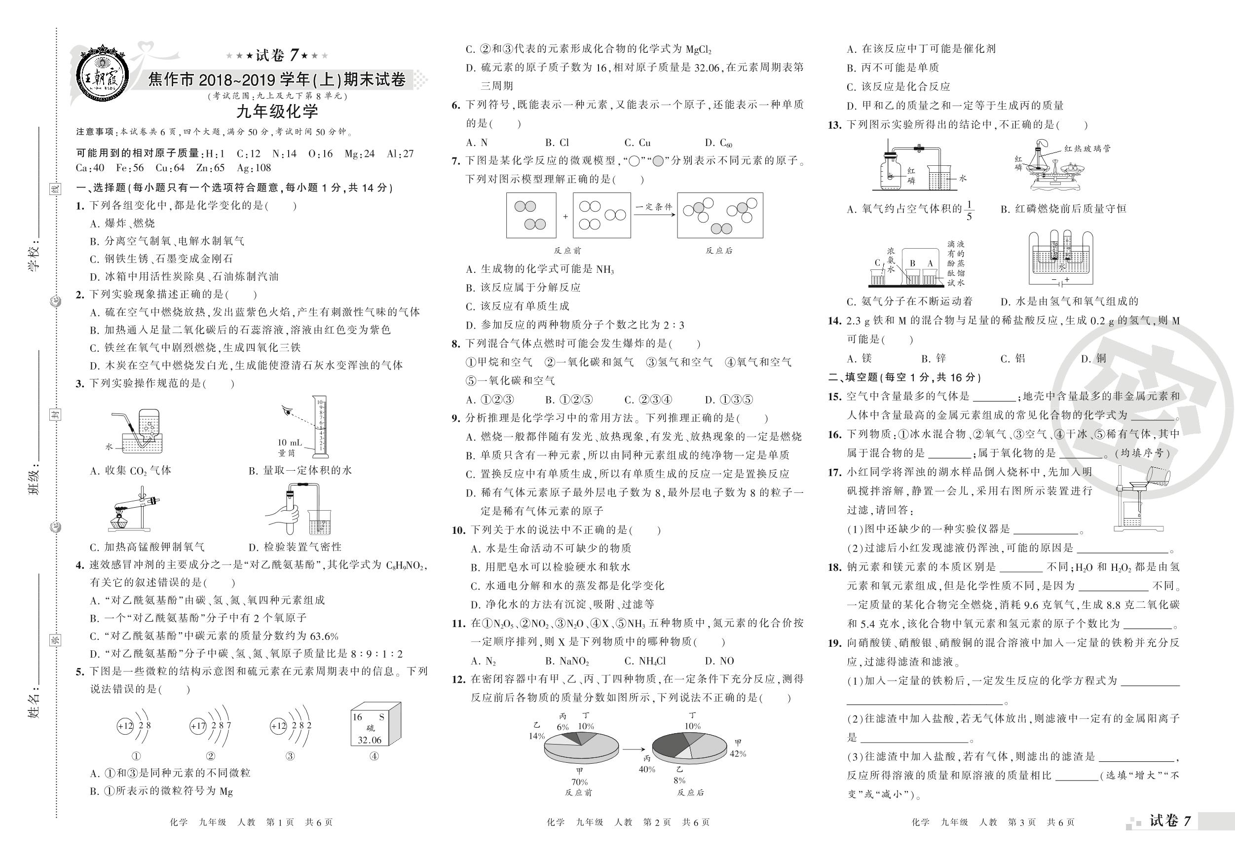 2018-2019学年第一学期焦作市九年级化学试卷(人教版)【7】
