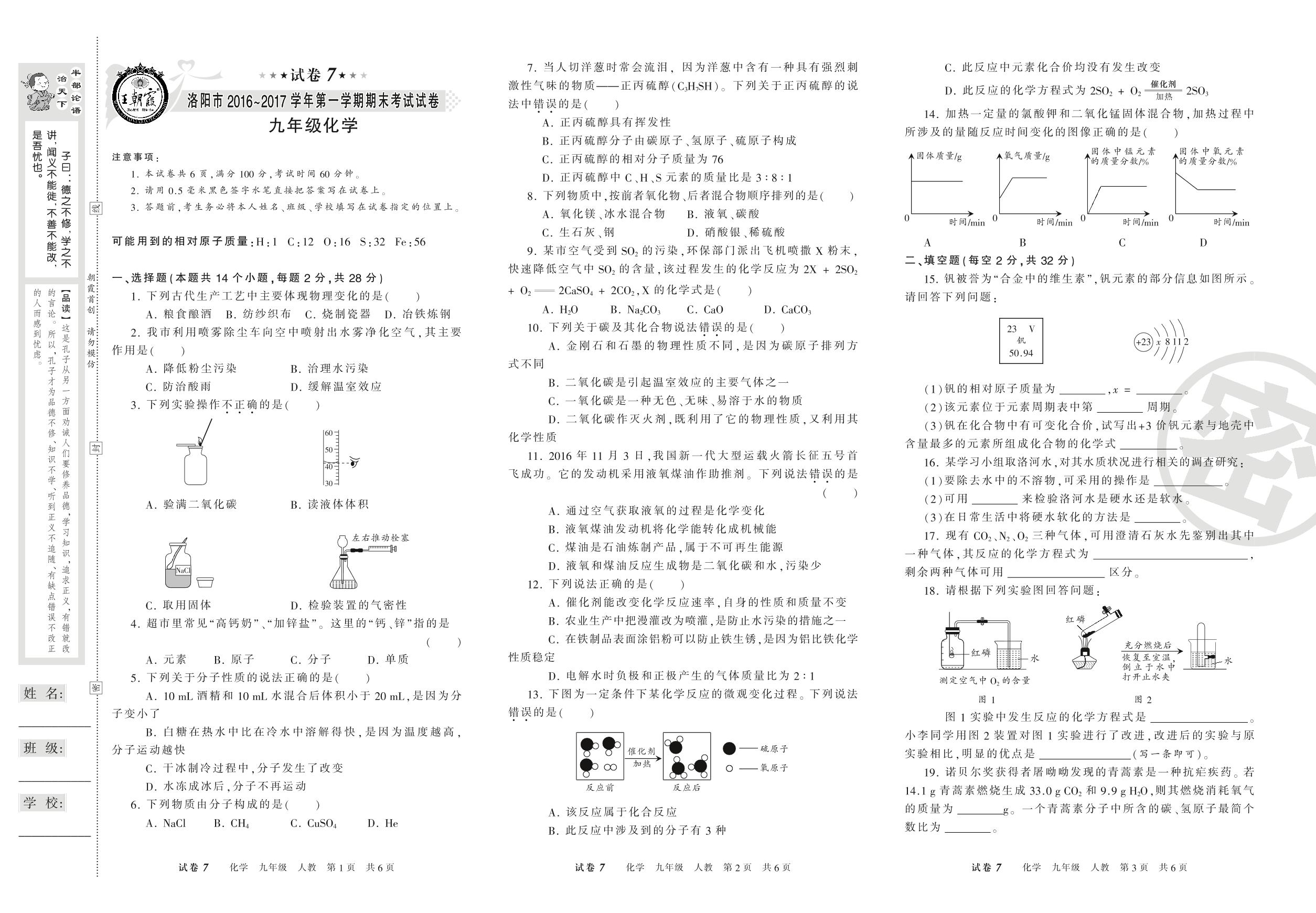 2016-2017学年第一学期洛阳市九年级化学试卷(人教版)【7】