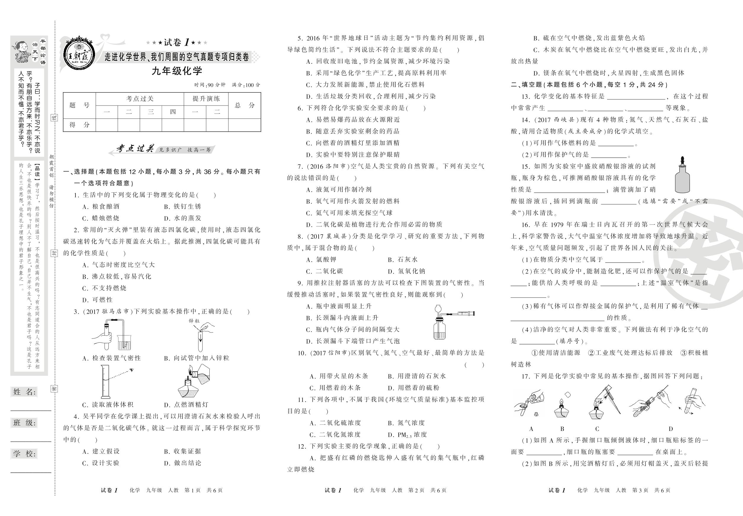 王朝霞期末专项卷九年级上册化学(人教版)【1】