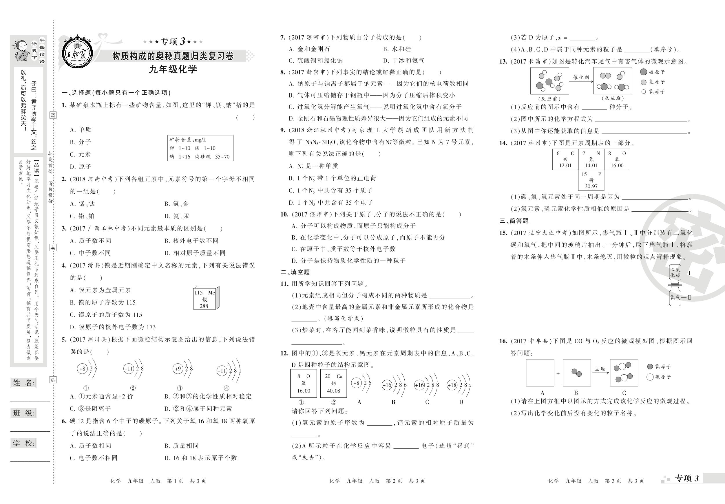 王朝霞期末专项卷——物质构成的奥秘、自然界的水真题归类复习卷九年级上册化学(人教版)_R21081290811【0】