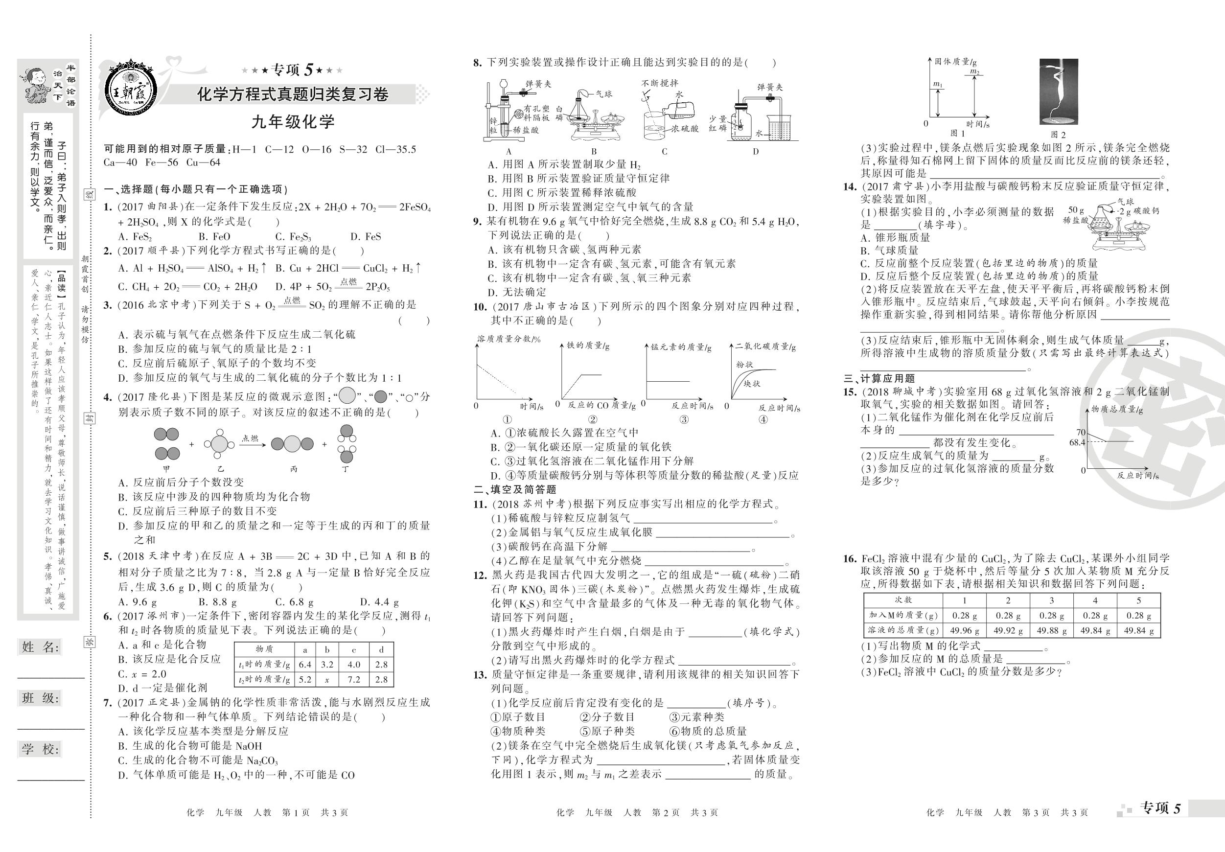 王朝霞期末专项卷——化学方程式、碳和碳的氧化物真题归类复习卷九年级上册化学(人教版)_R21081291325【0】