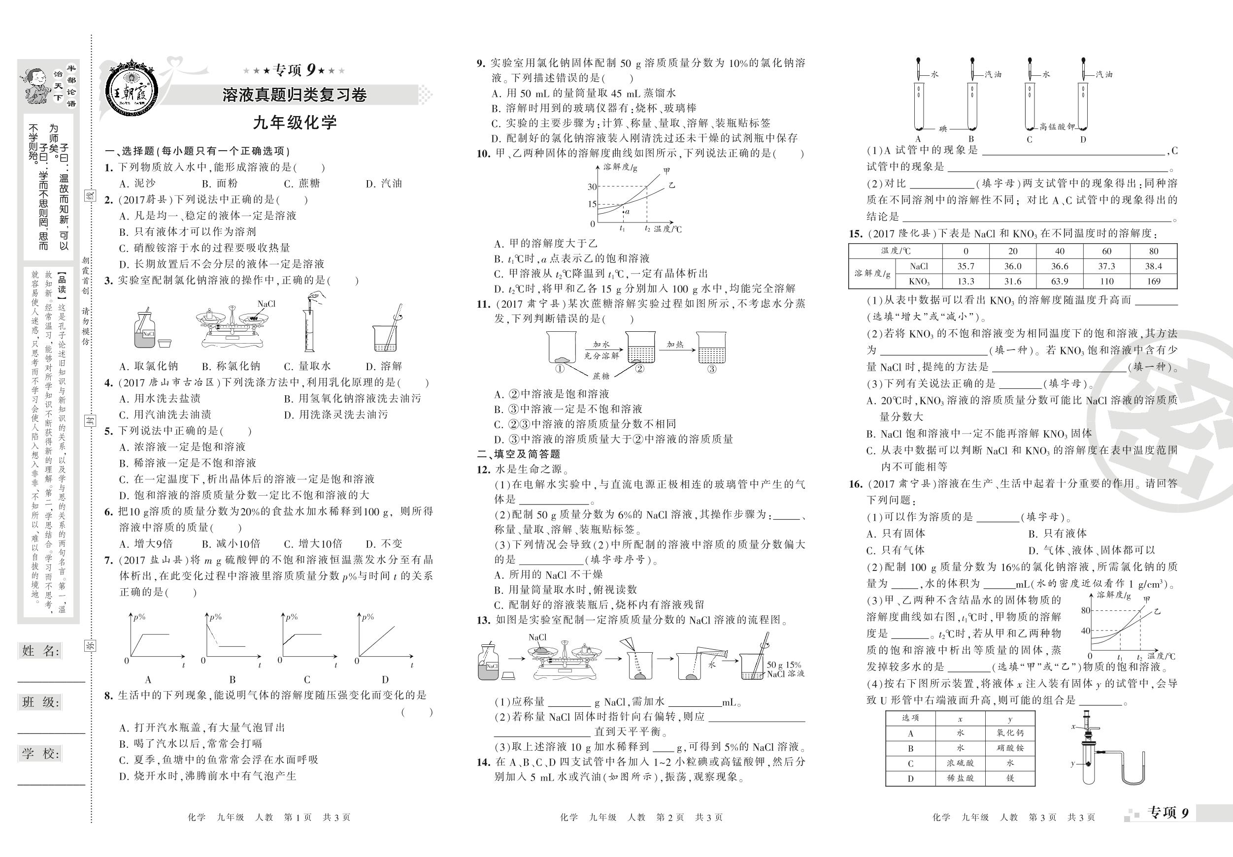 王朝霞期末专项卷——溶液、酸和碱真题归类复习卷九年级上册化学(人教版)_R21081291437【0】