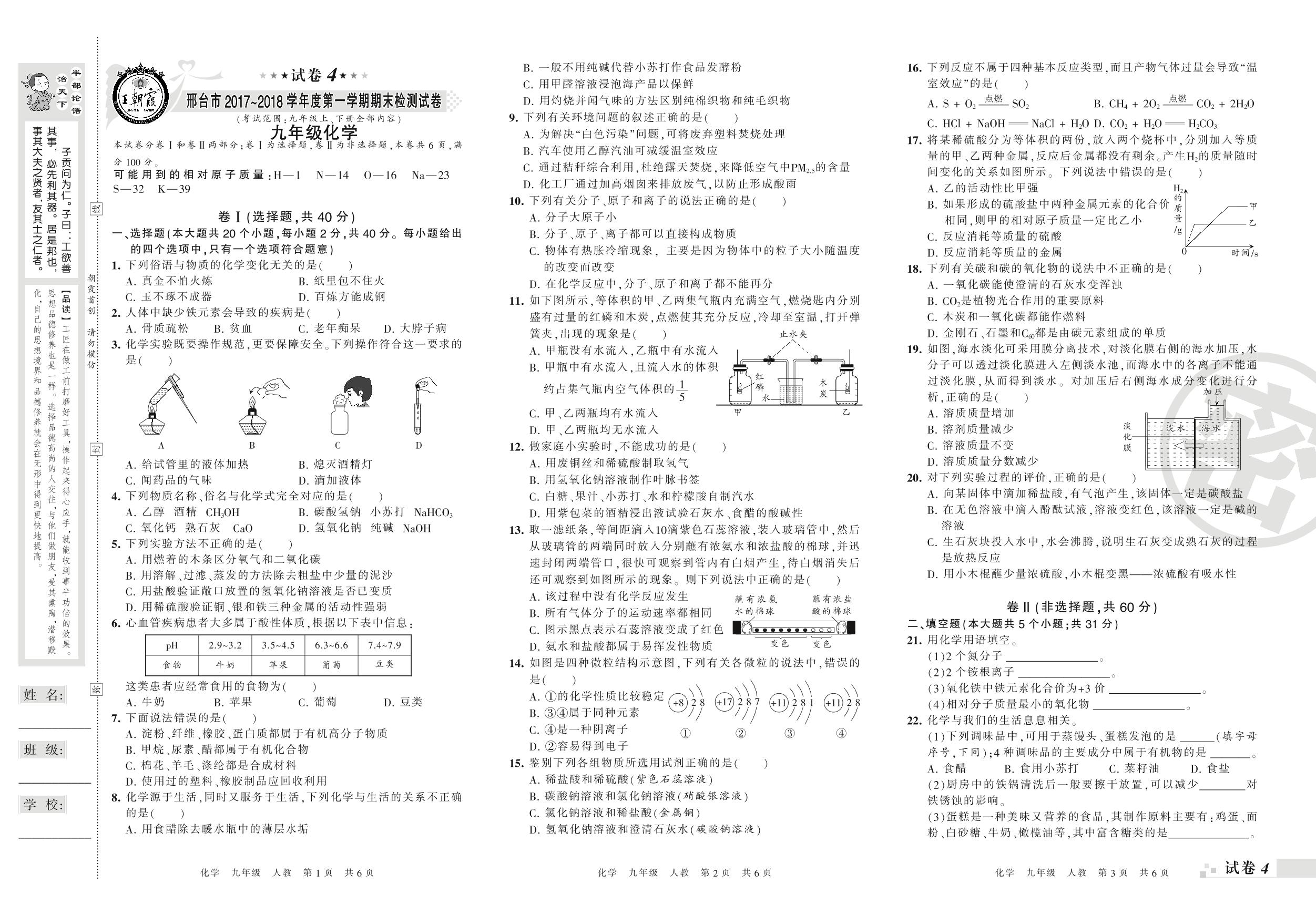 2017-2018学年第一学期邢台市九年级化学试卷(人教版)【4】