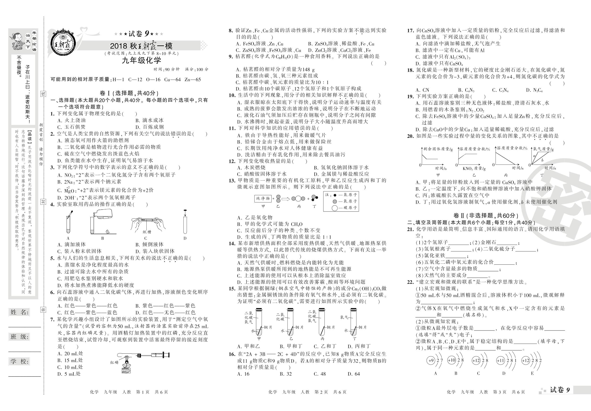 王朝霞期末模拟卷九年级上册化学(人教版)_R21081291847【9】