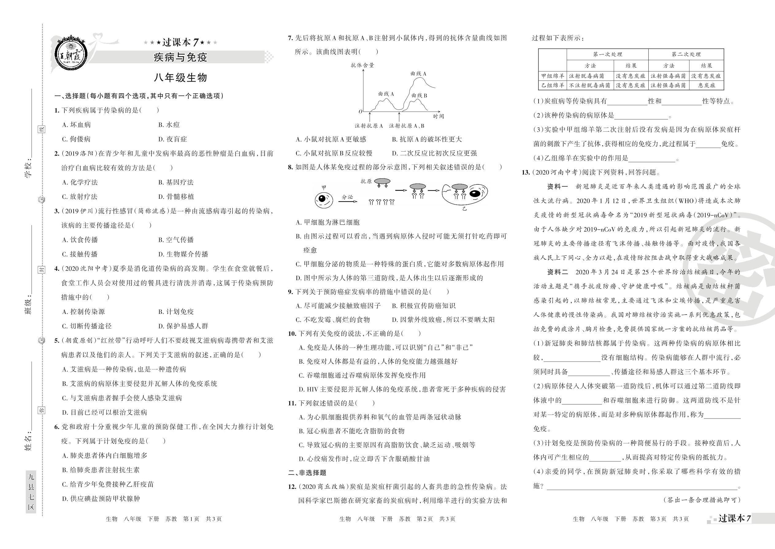 王朝霞期末过课本——疾病与免疫、珍爱生命八年级下册生物(苏教版)_R21081292029【0】