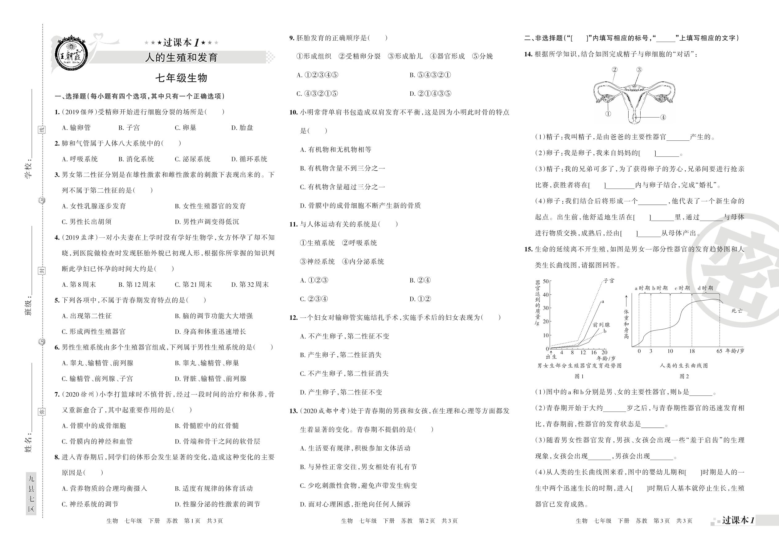 王朝霞期末过课本七年级下册生物(苏教版)_R21081292157【0】
