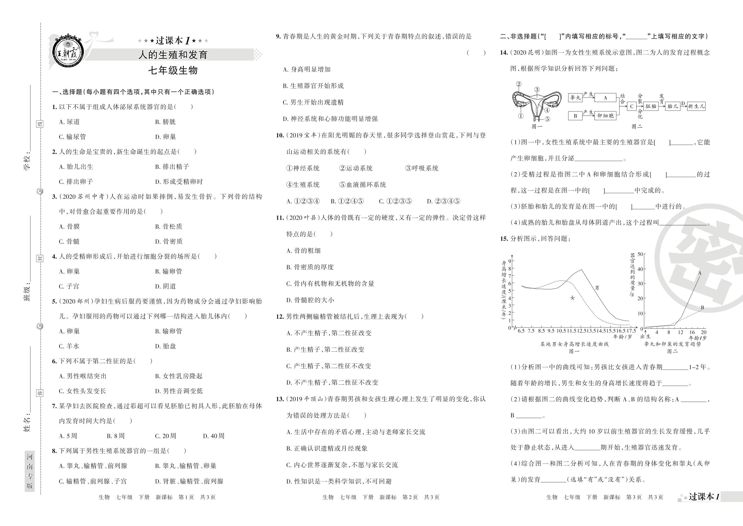 王朝霞期末过课本——人的生殖和发育、人的食物来自环境(一)七年级下册生物(新课版)【0】