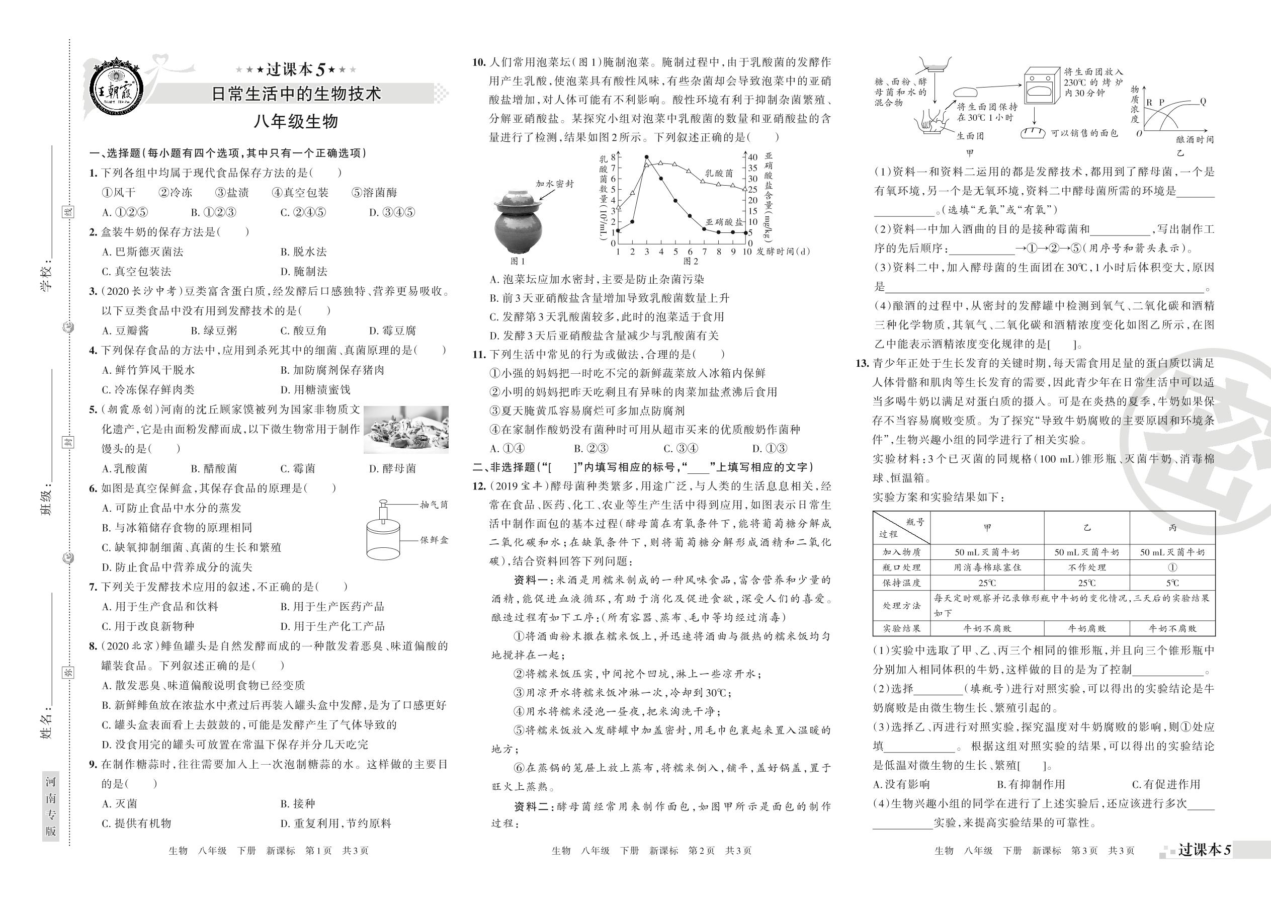 王朝霞期末过课本——日常生活中的生物技术、现代生物技术八年级下册生物(新课版)【0】