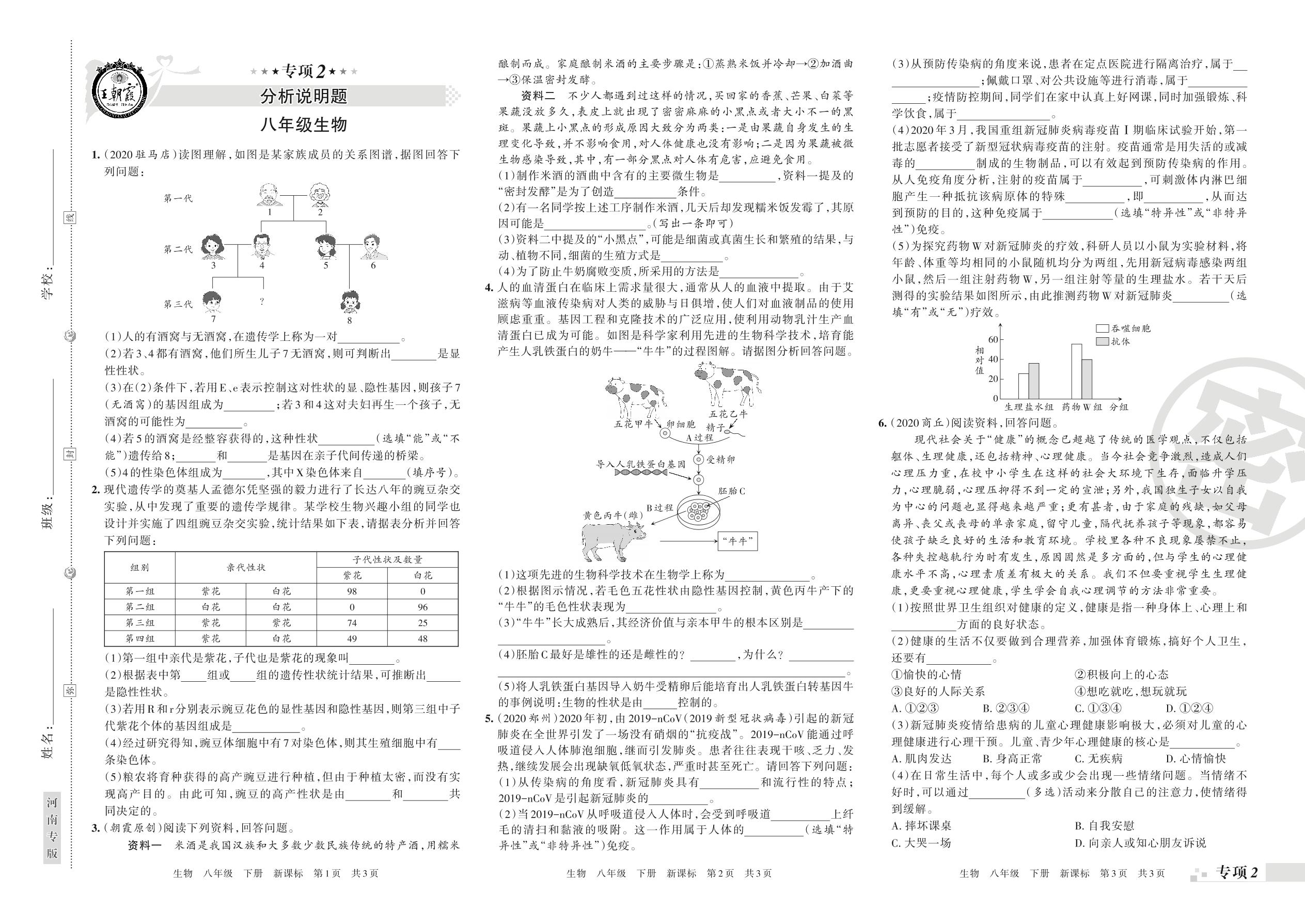 王朝霞期末专项卷——分析说明题、实验探究题八年级下册生物(新课版)【0】
