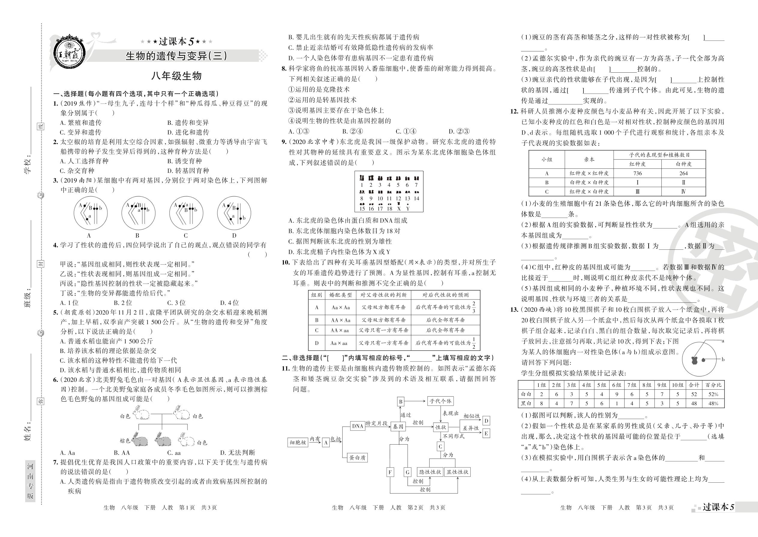 王朝霞期末过课本——生物的遗传与变异(三)、生命起源和生物进化八年级下册生物(人教版)【0】
