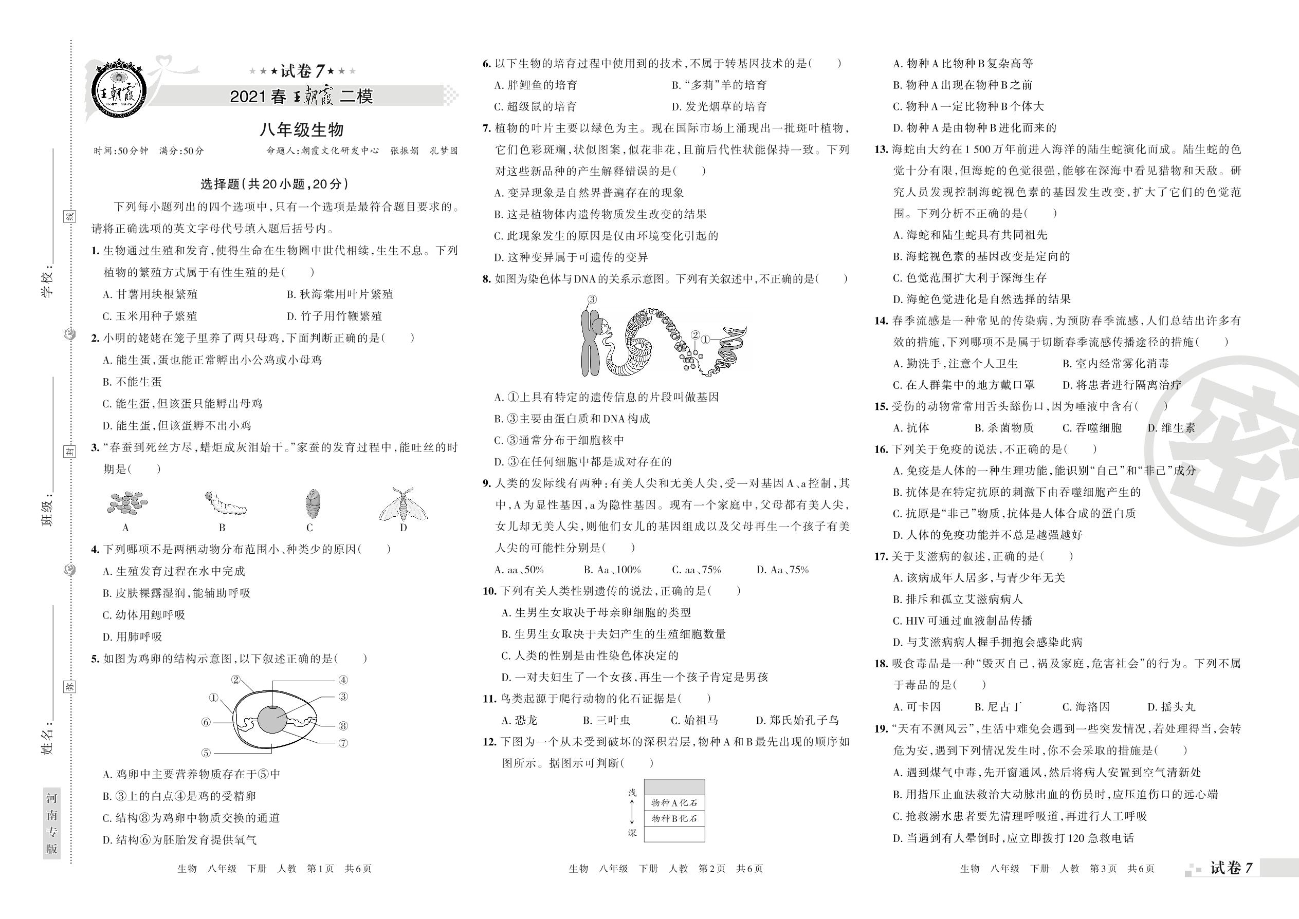 王朝霞期末模拟卷八年级下册生物(人教版)_R21081293147【7】
