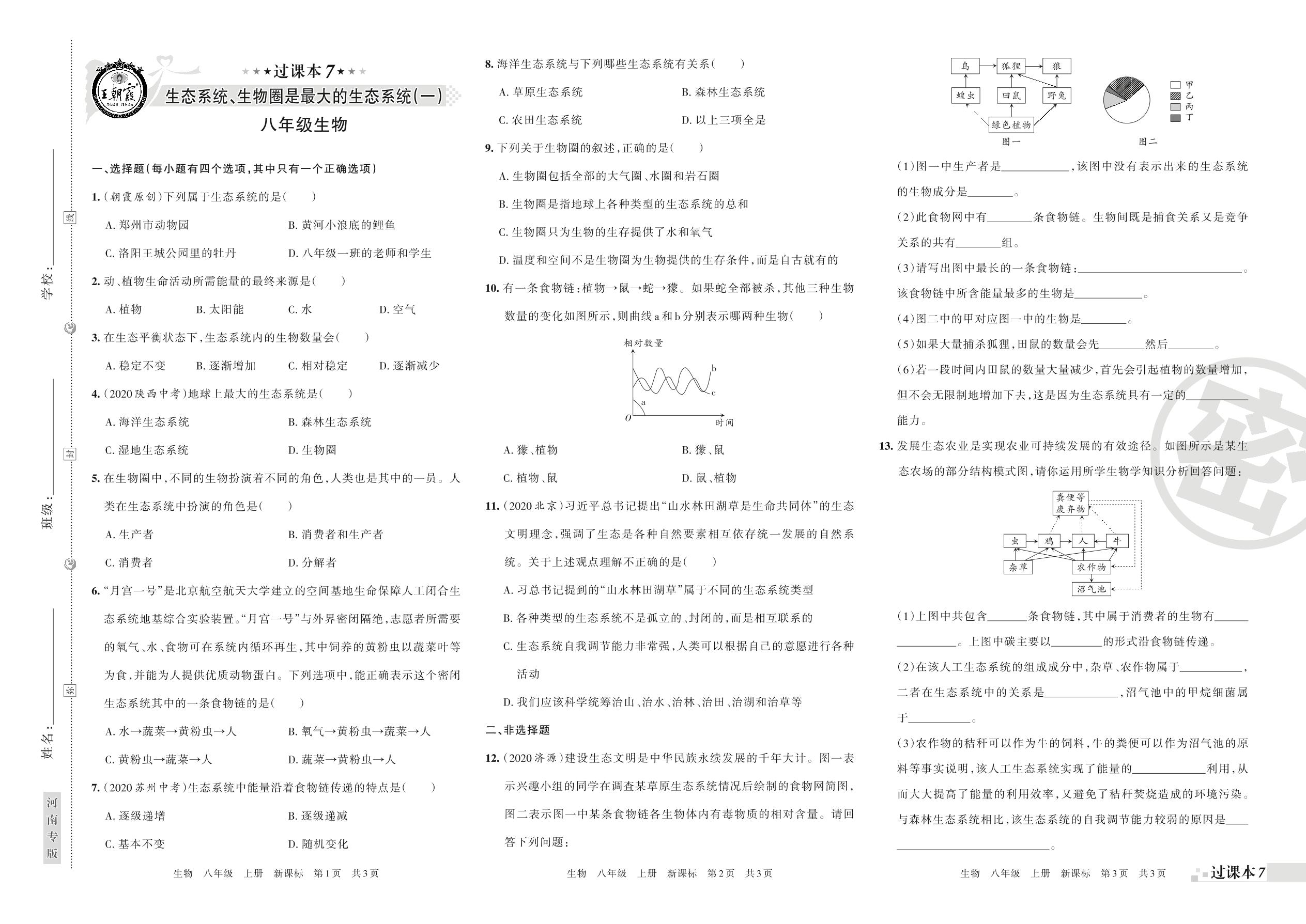王朝霞期末过课本——生态系统、生物圈是最大的生态系统八年级上册生物(苏教版)【0】