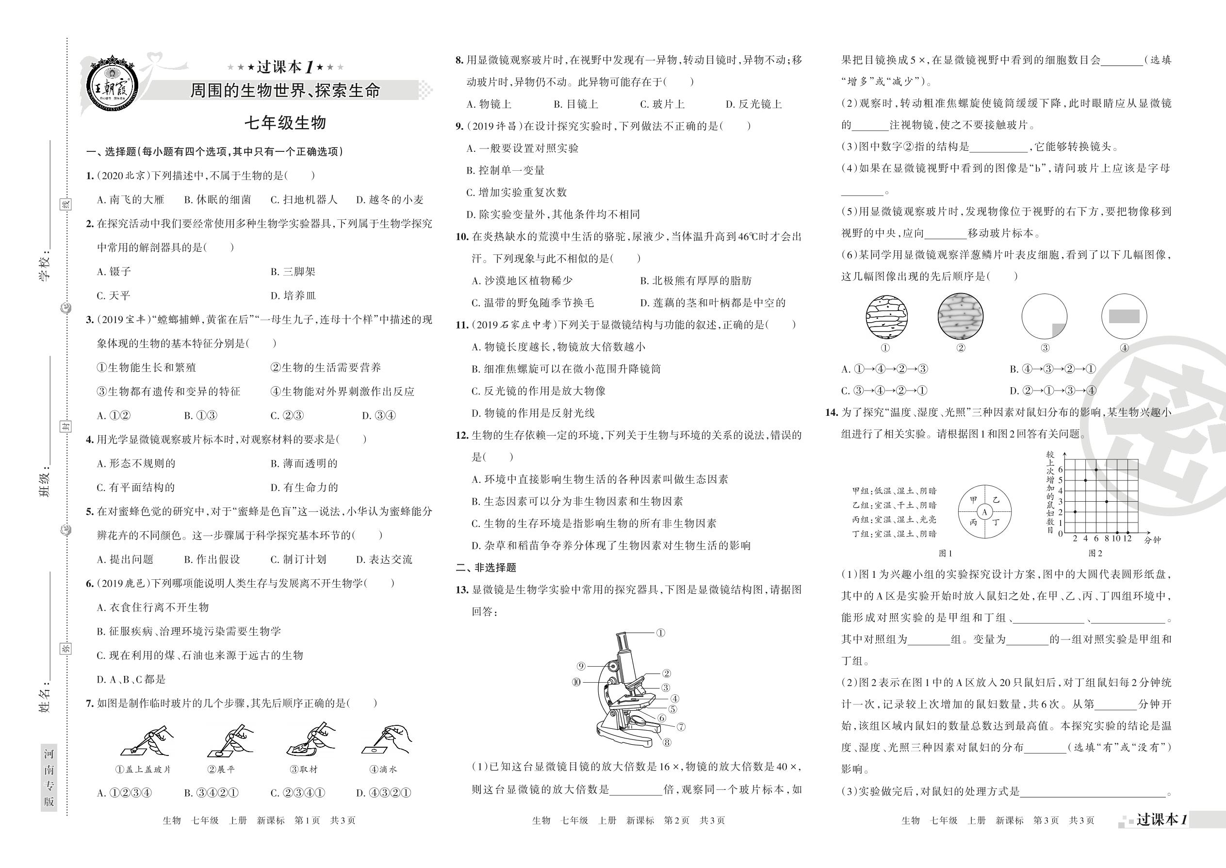 王朝霞期末过课本——周围的生物世界、探索生命、细胞是生命活动的基本单位七年级上册生物(苏教版)【0】