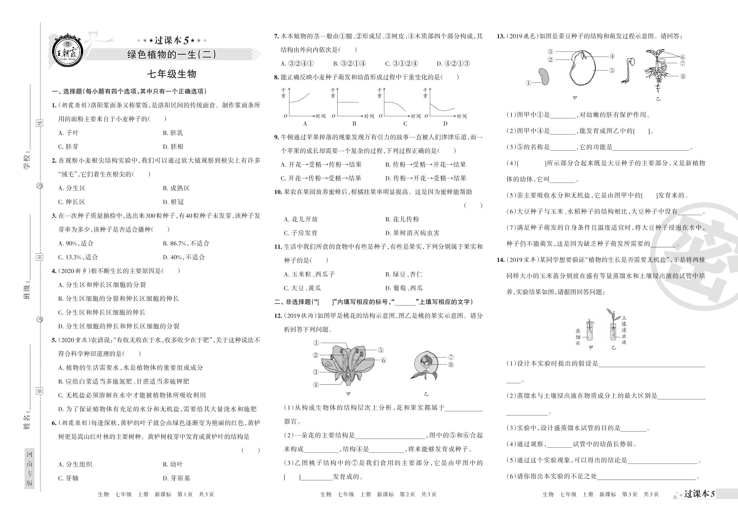 王朝霞期末过课本——绿色植物的一生、绿色植物的光合作用和呼吸作用七年级上册生物(苏教版)【0】