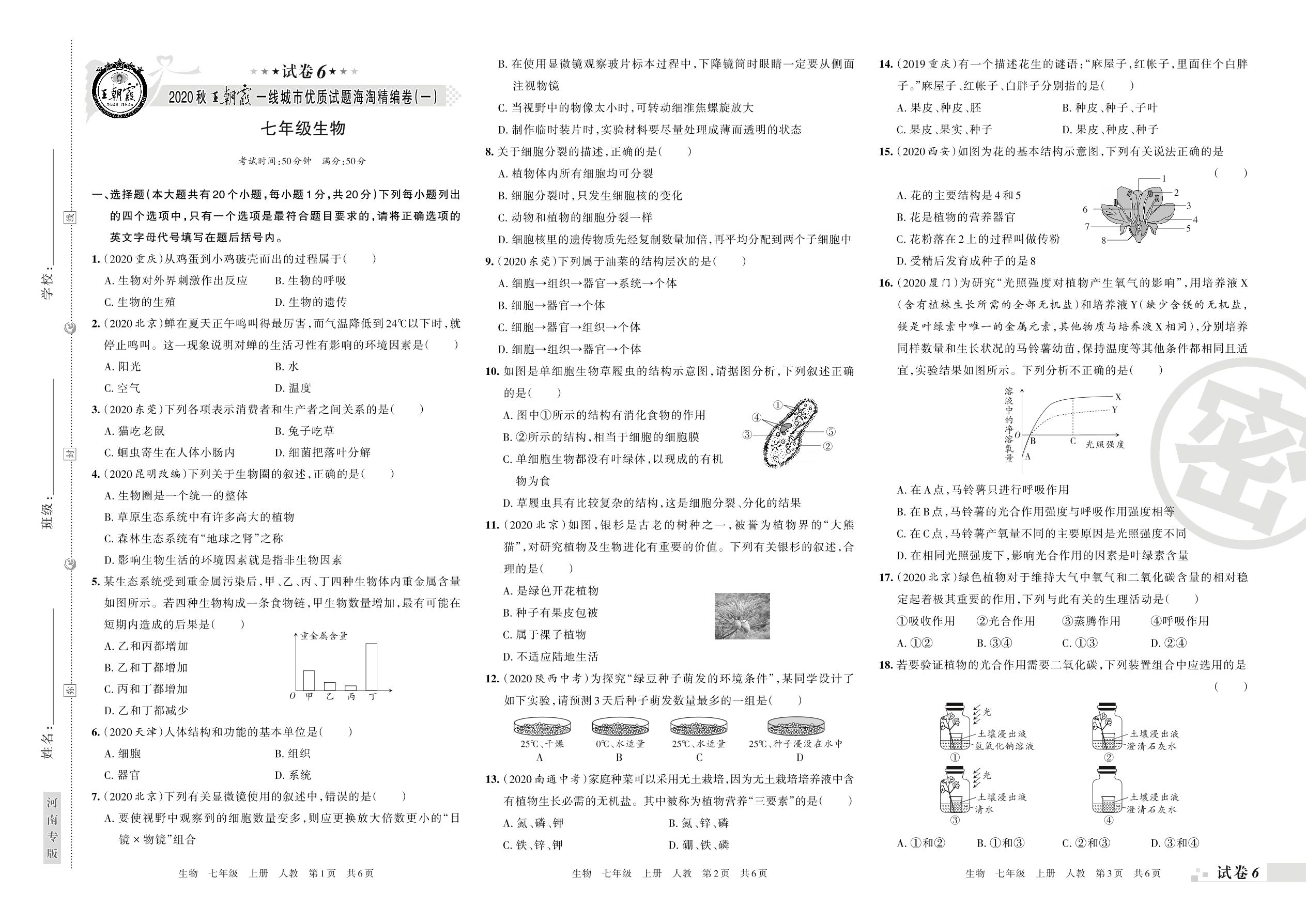 王朝霞海淘期末精编卷七年级上册生物(人教版)【6】
