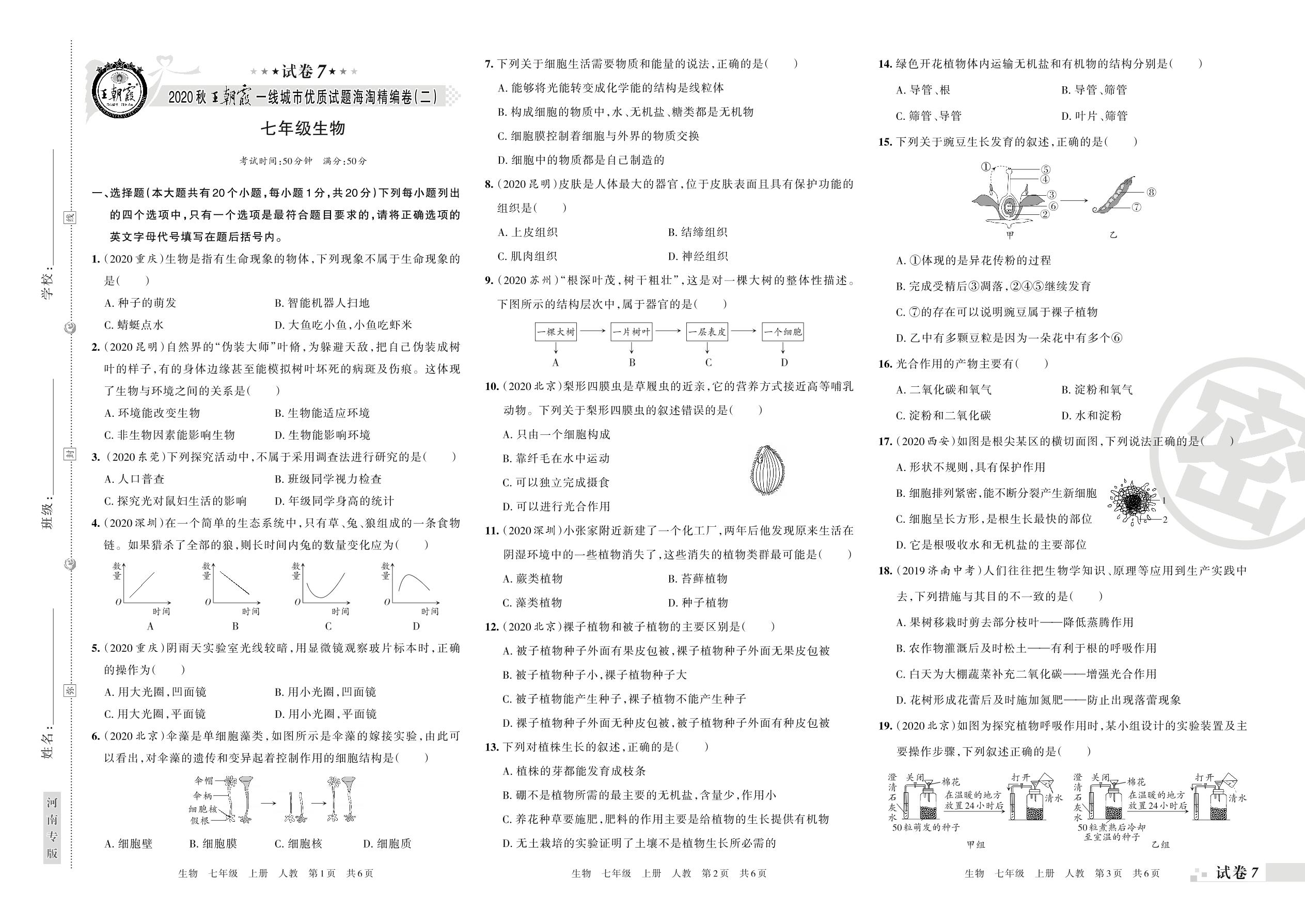 王朝霞海淘期末精编卷七年级上册生物(人教版)【7】