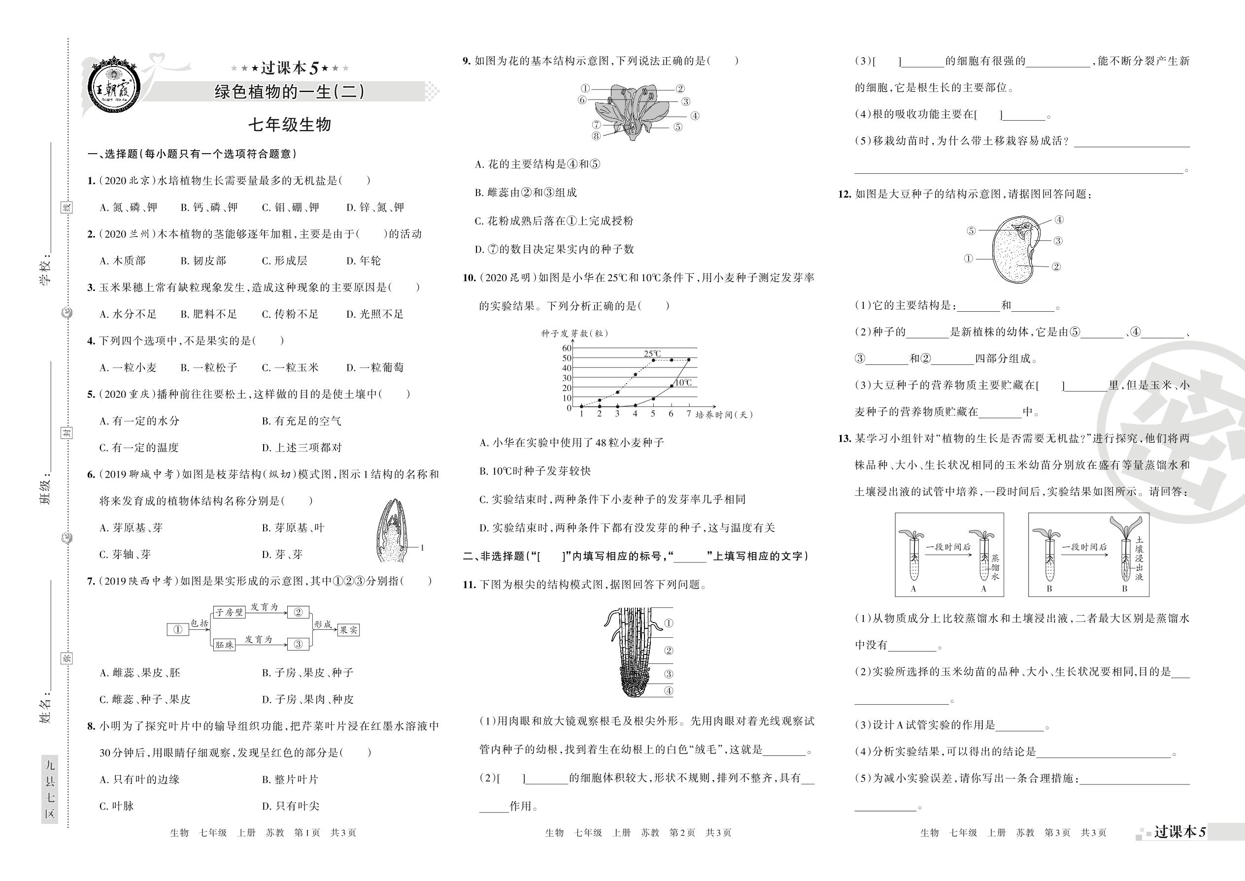 王朝霞期末过课本——绿色植物的一生、绿色植物的光合作用和呼吸作用七年级上册生物(苏教版)_R21081294449【0】