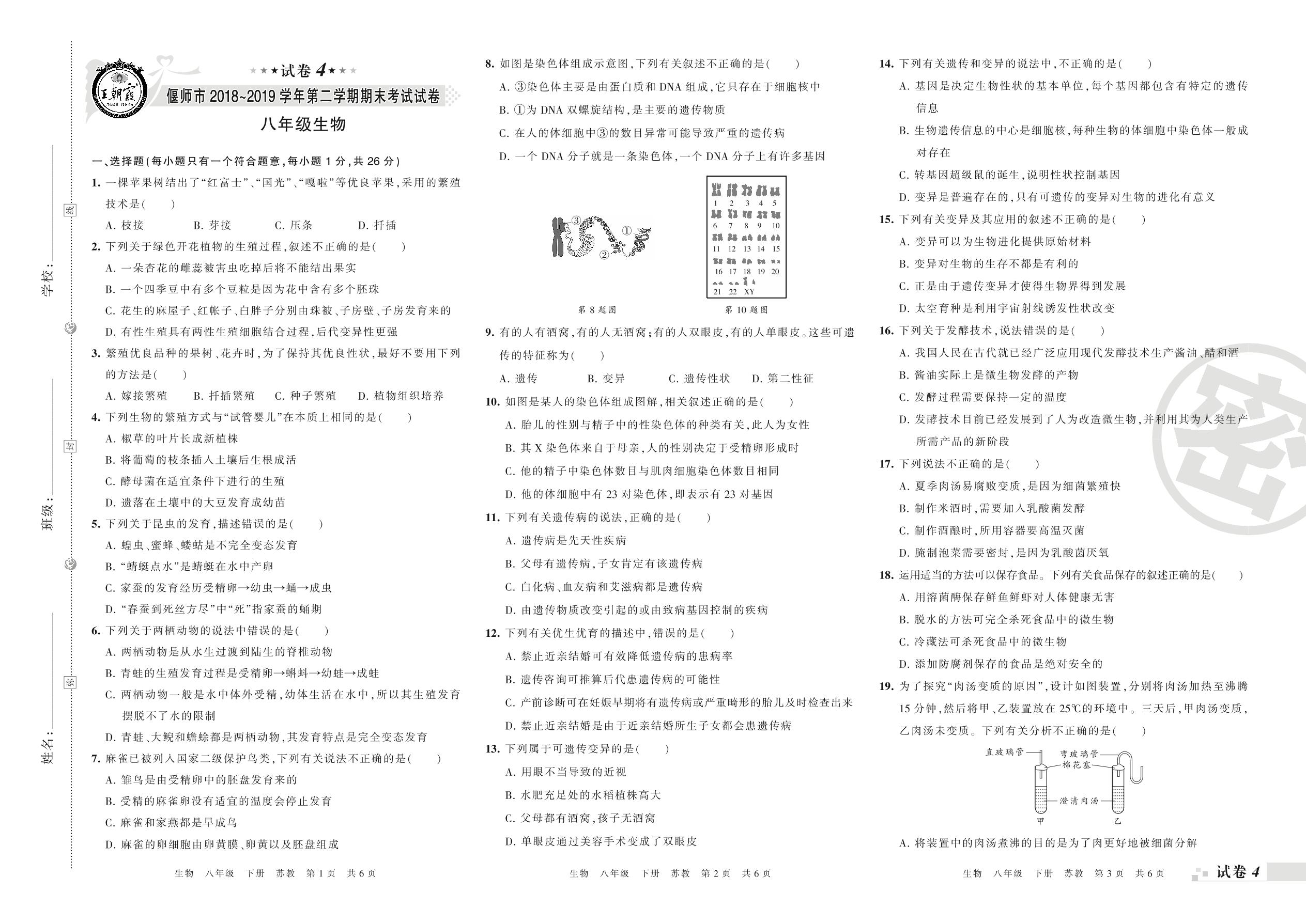 2018-2019学年第二学期偃师市八年级生物试卷(苏教版)【4】
