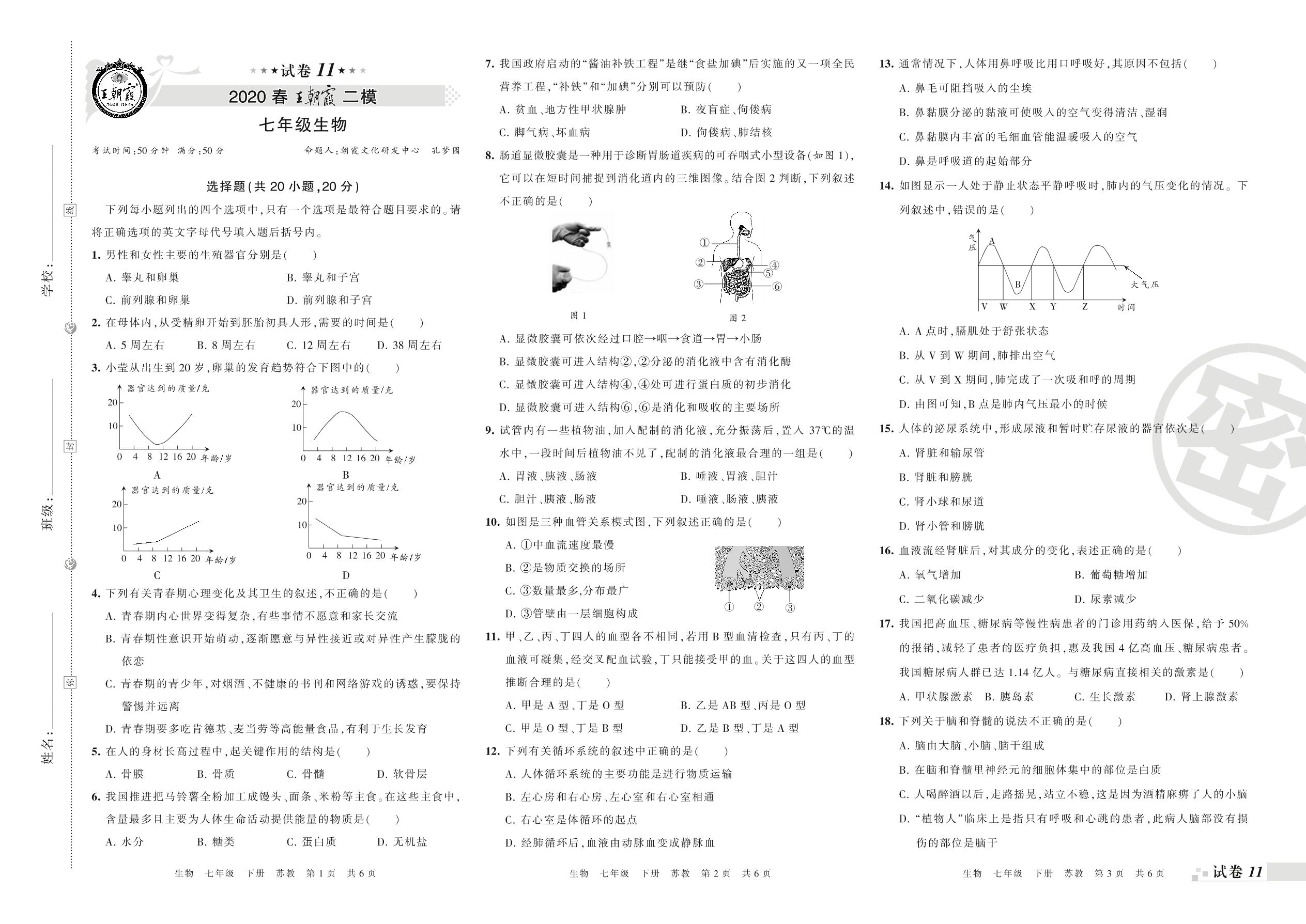 王朝霞期末模拟卷七年级下册生物(苏教版)【11】