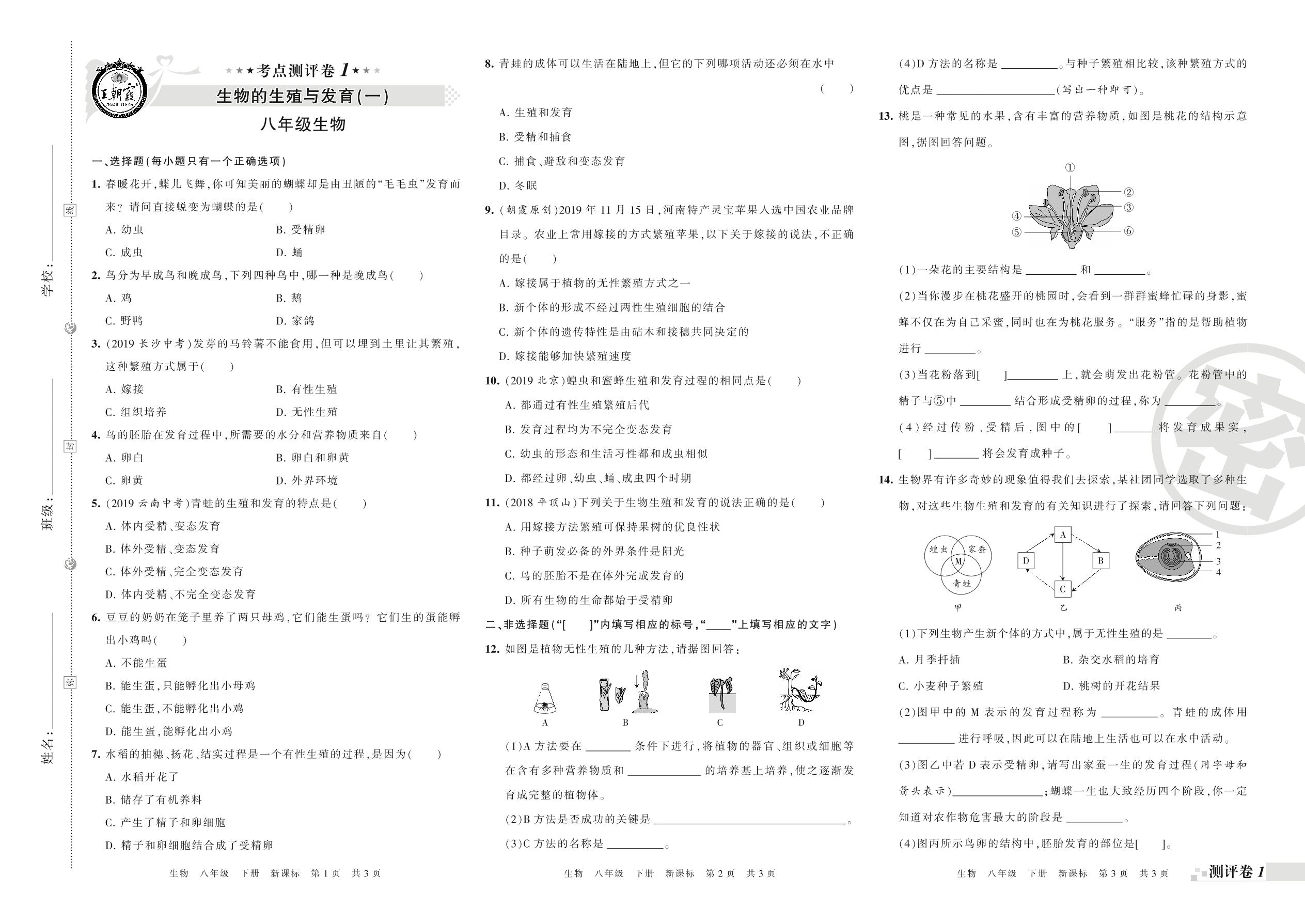 王朝霞期末测评卷——生物的生殖与发展(一)(二)八年级下册生物(新课标版)【0】