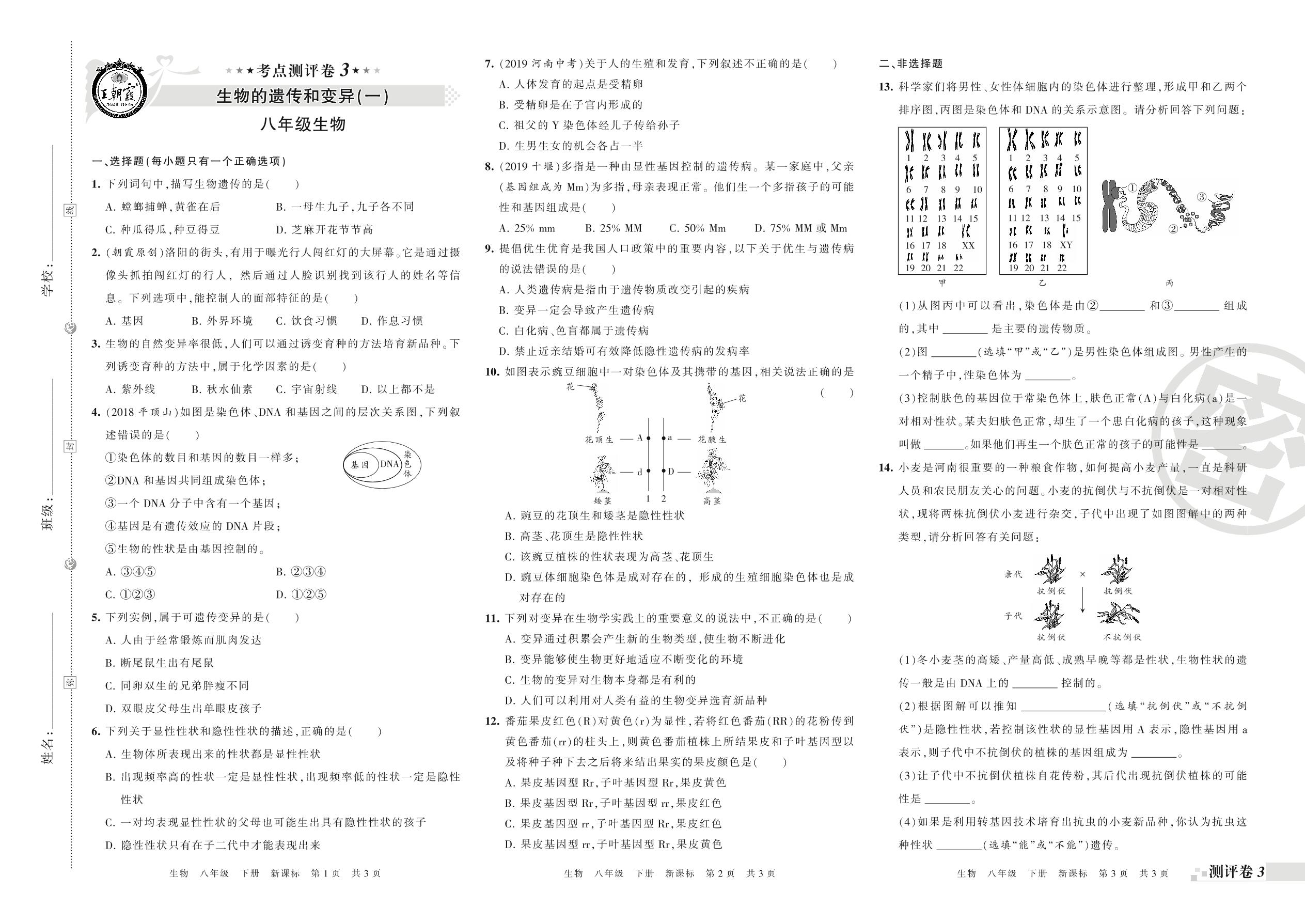 王朝霞期末测评卷——生物的遗传和变异(一)(二)八年级下册生物(新课标版)【0】