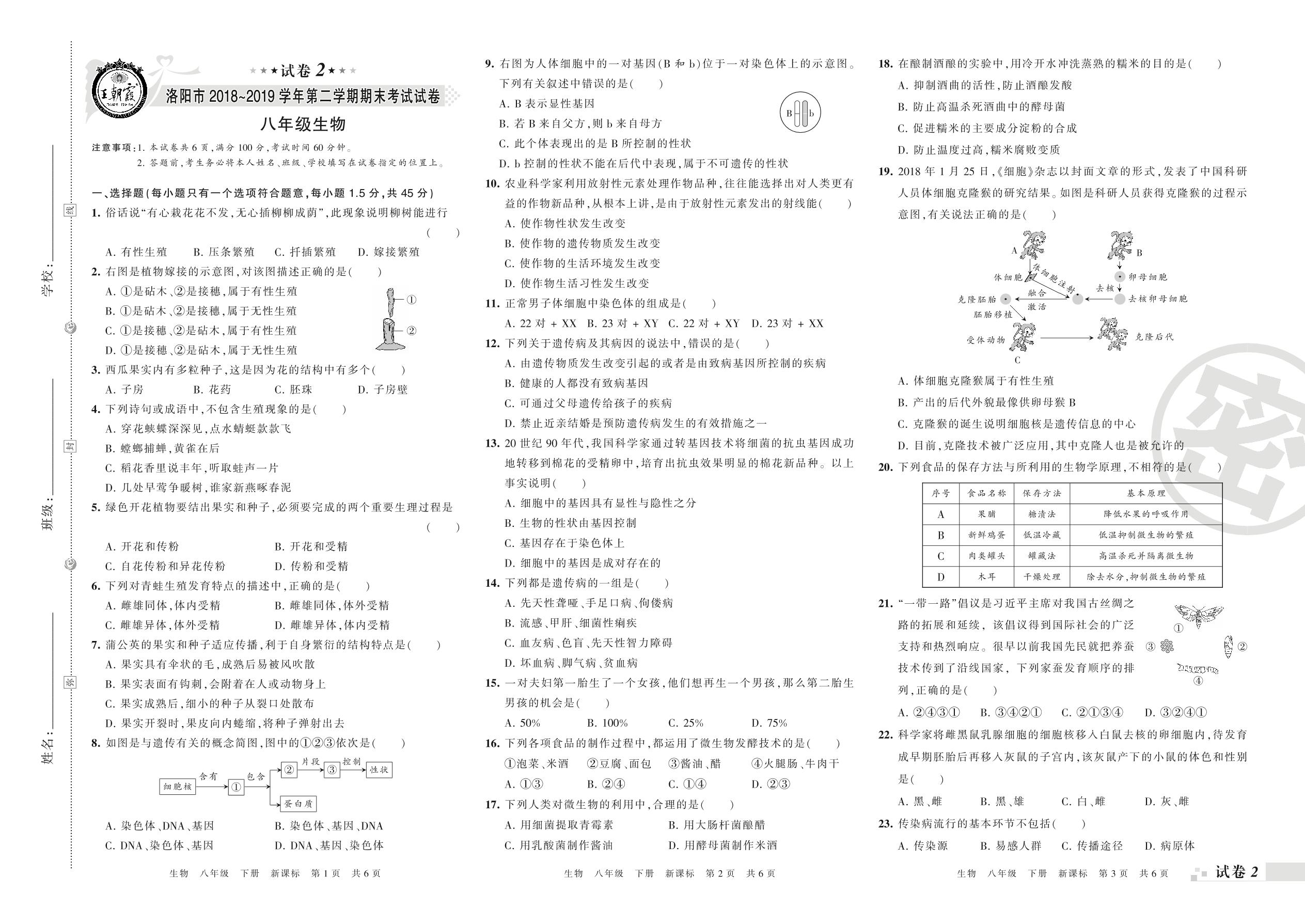 2018-2019学年第二学期洛阳市八年级生物试卷(新课标版)【2】