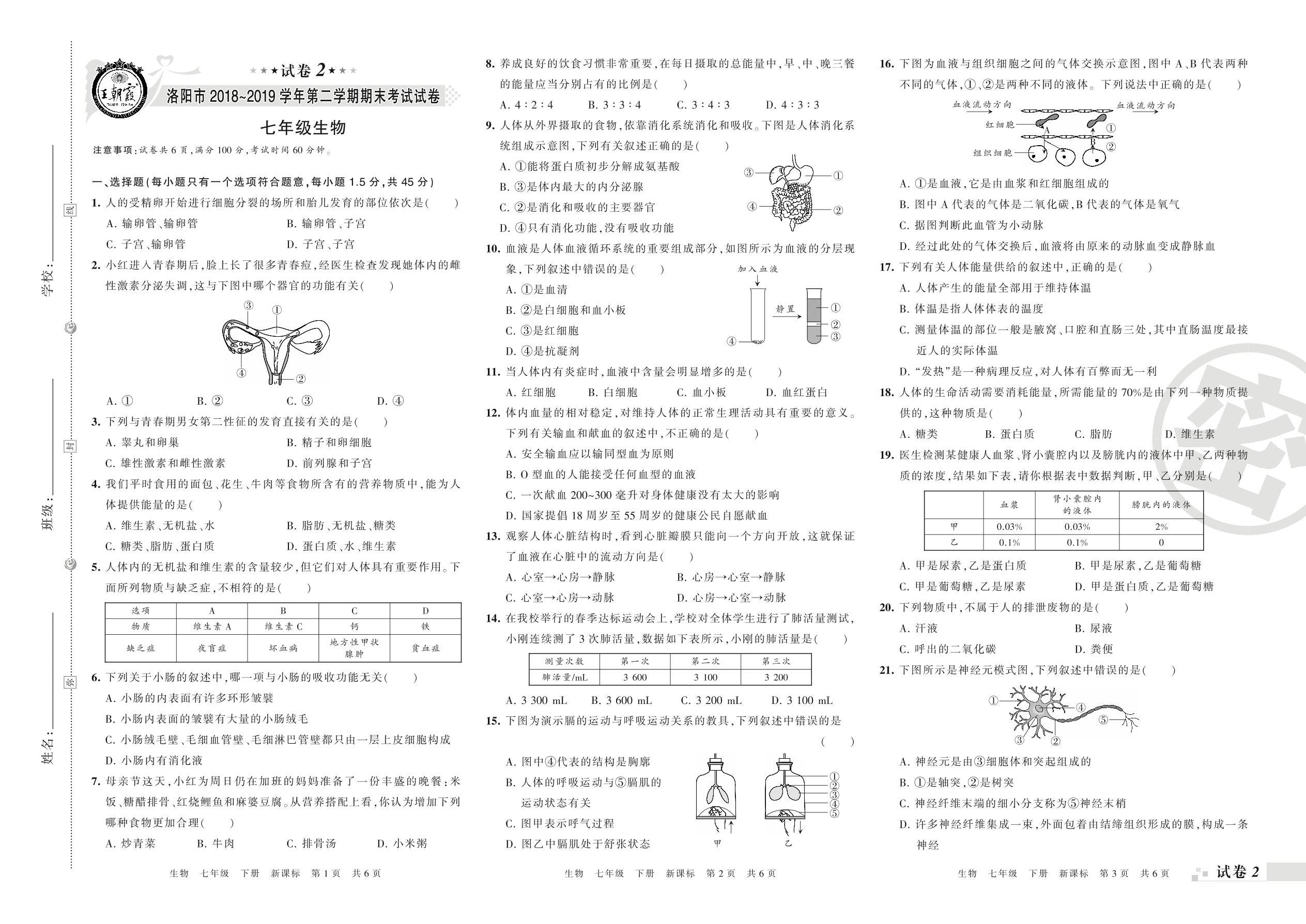 2018-2019学年第二学期洛阳市七年级生物试卷(新课标版)【2】