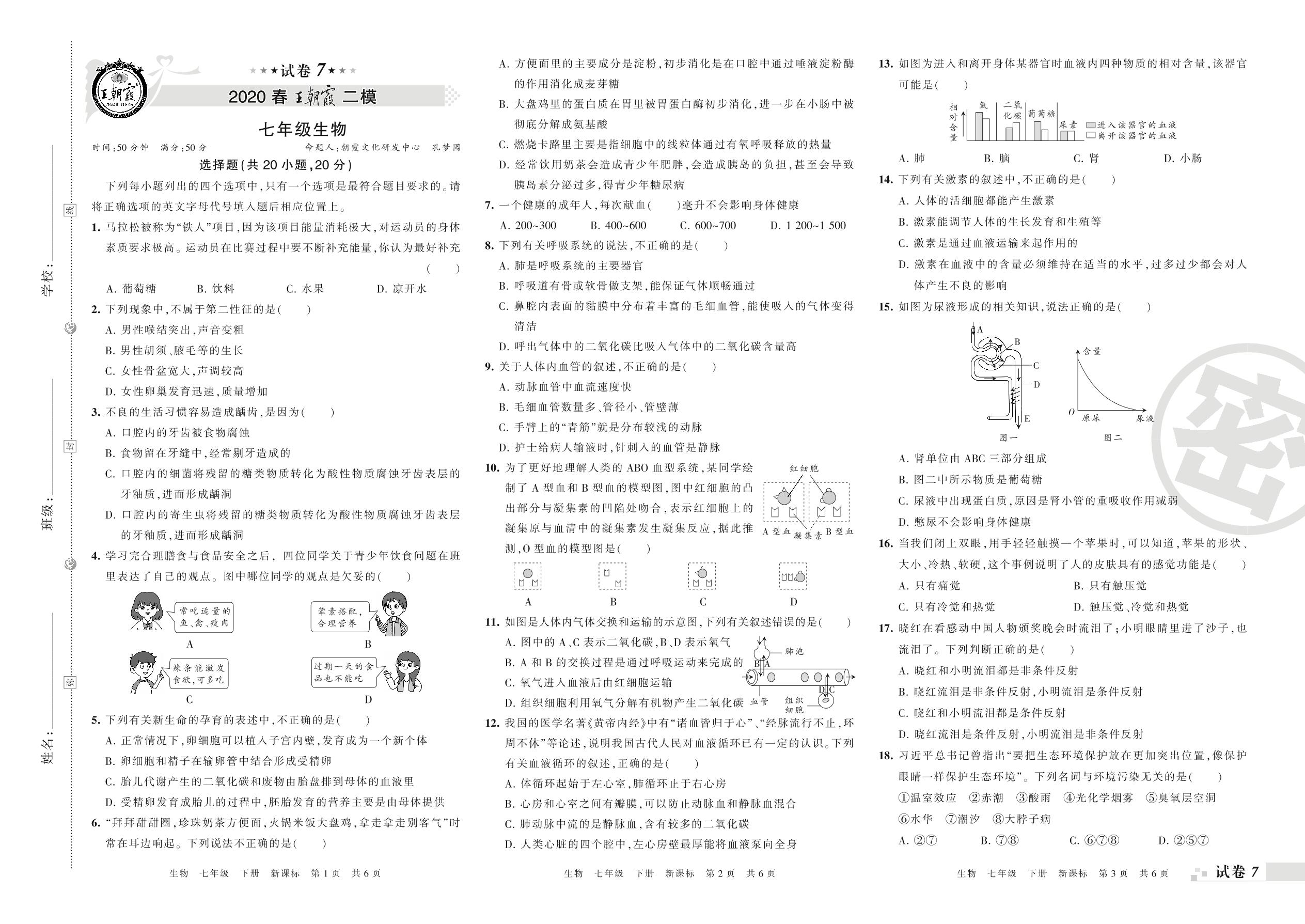 王朝霞期末模拟卷七年级下册生物(新课标版)_R21081295728【7】