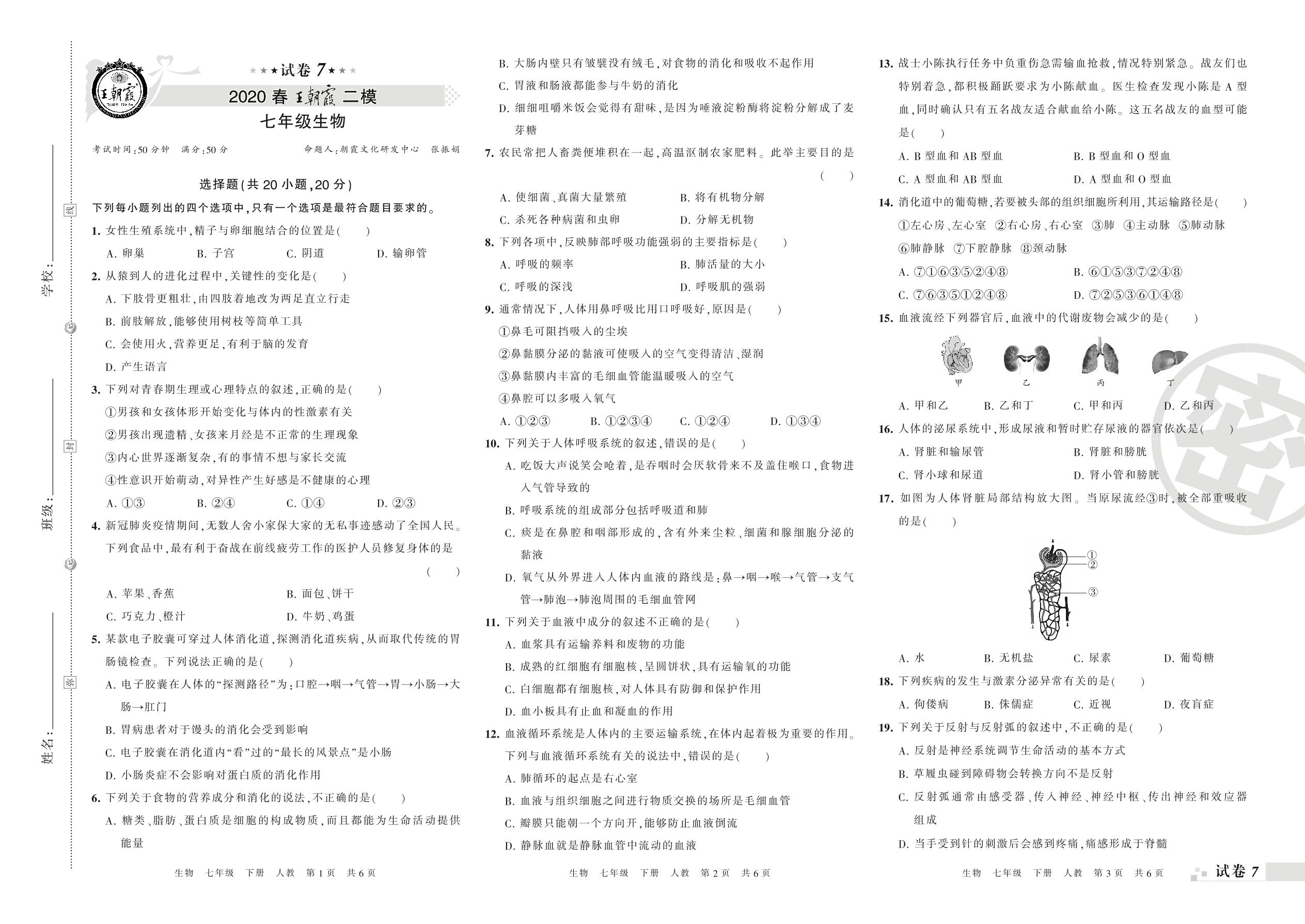 王朝霞期末模拟卷七年级下册生物(人教版)_R21081295842【7】