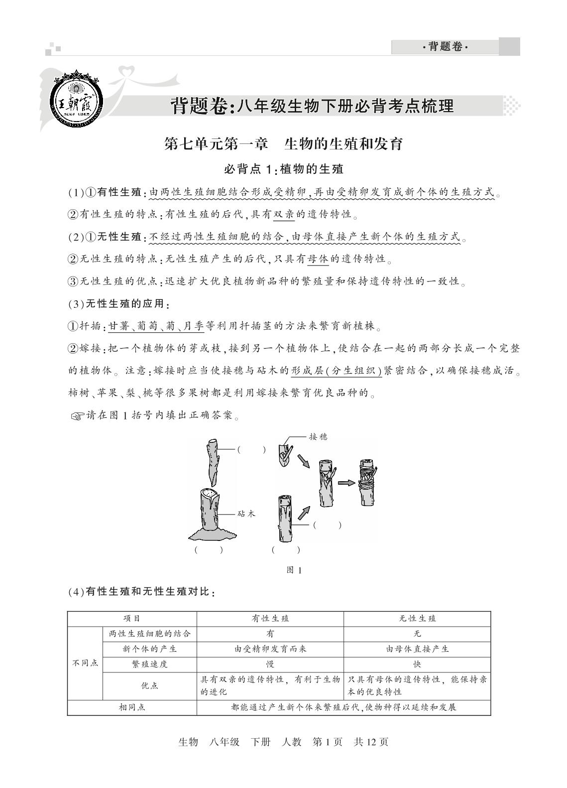 王朝霞期末背题卷——必背考点梳理八年级下册生物(人教版)【0】