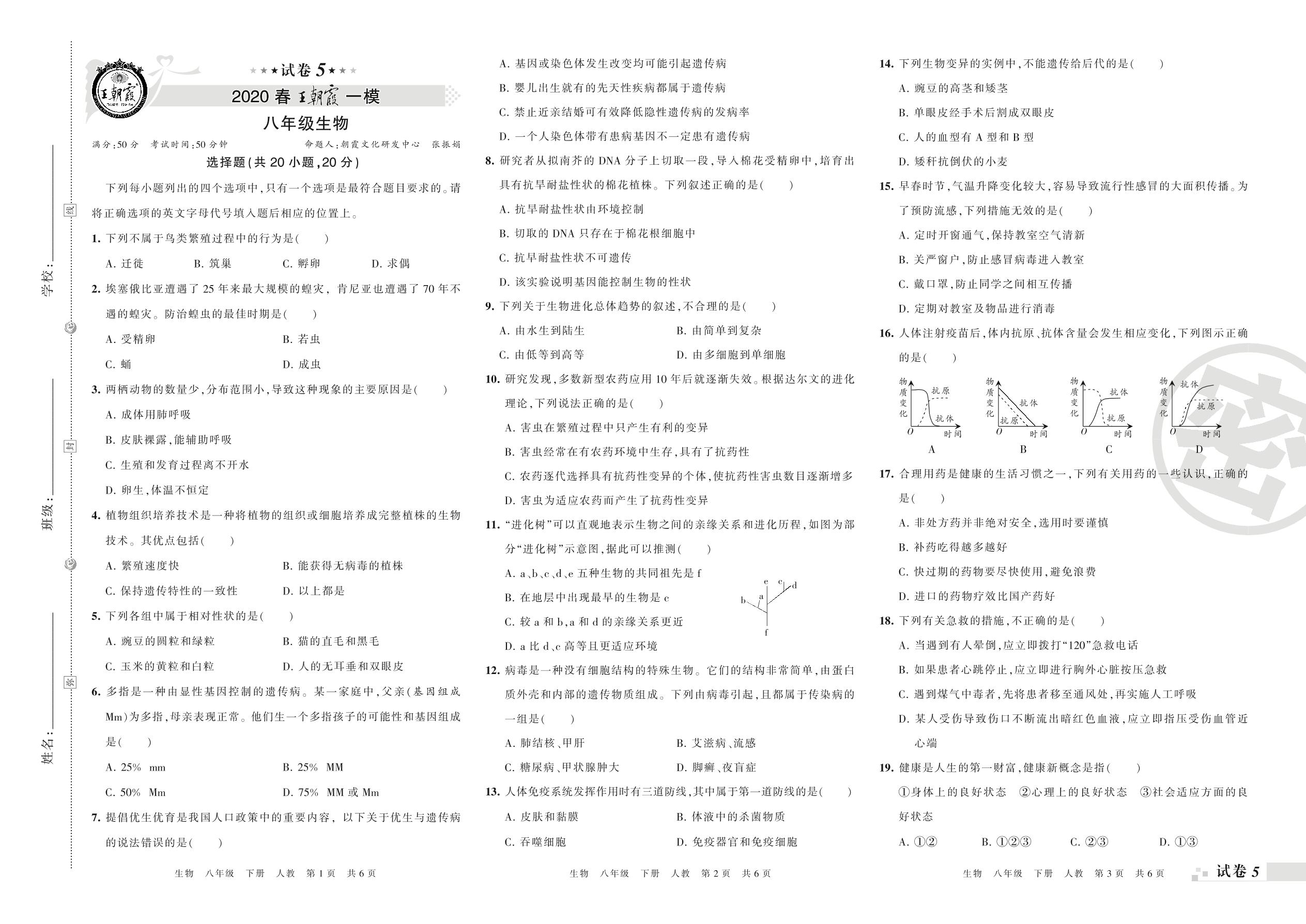 王朝霞期末模拟卷八年级下册生物(人教版)【5】