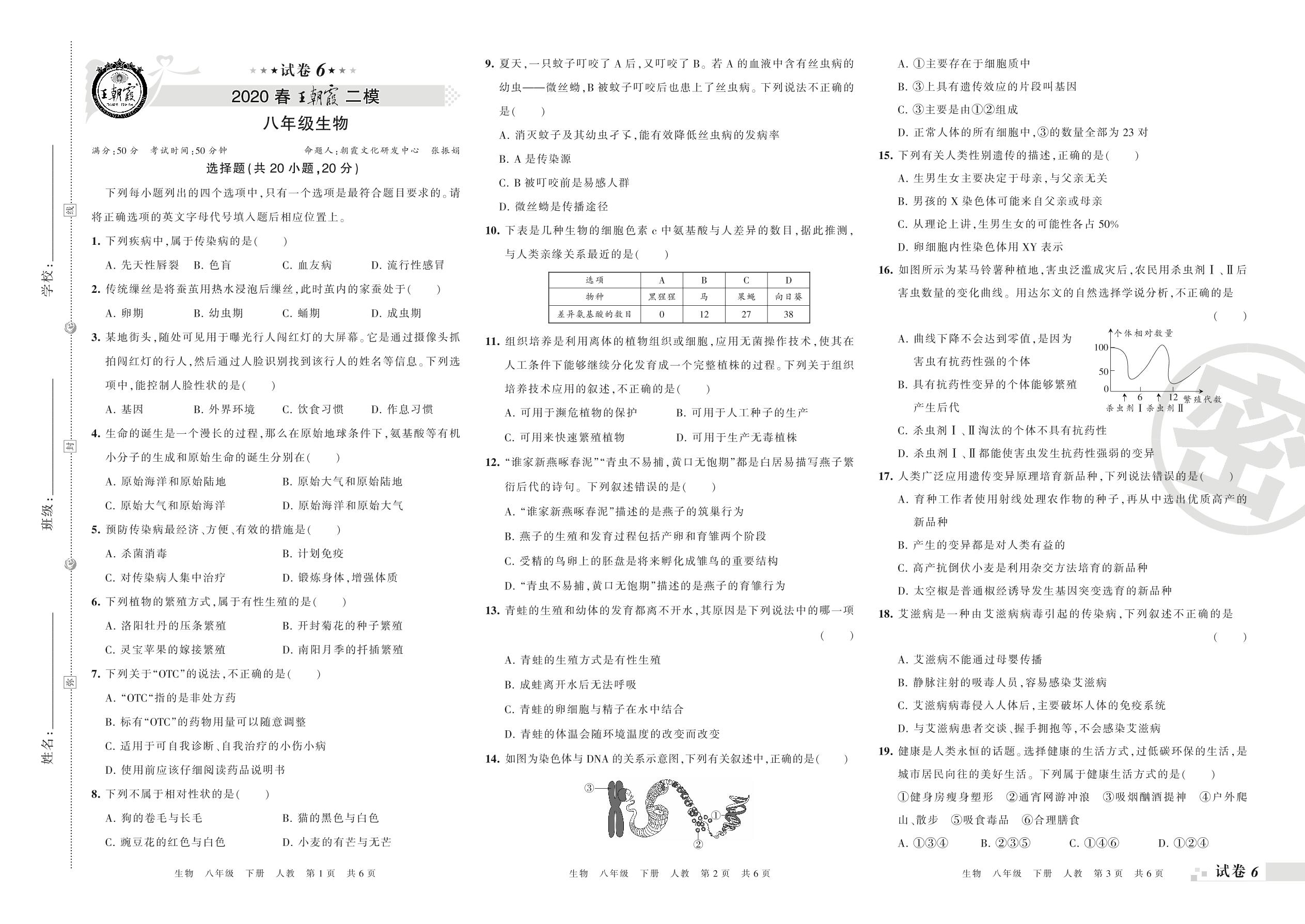 王朝霞期末模拟卷八年级下册生物(人教版)【6】