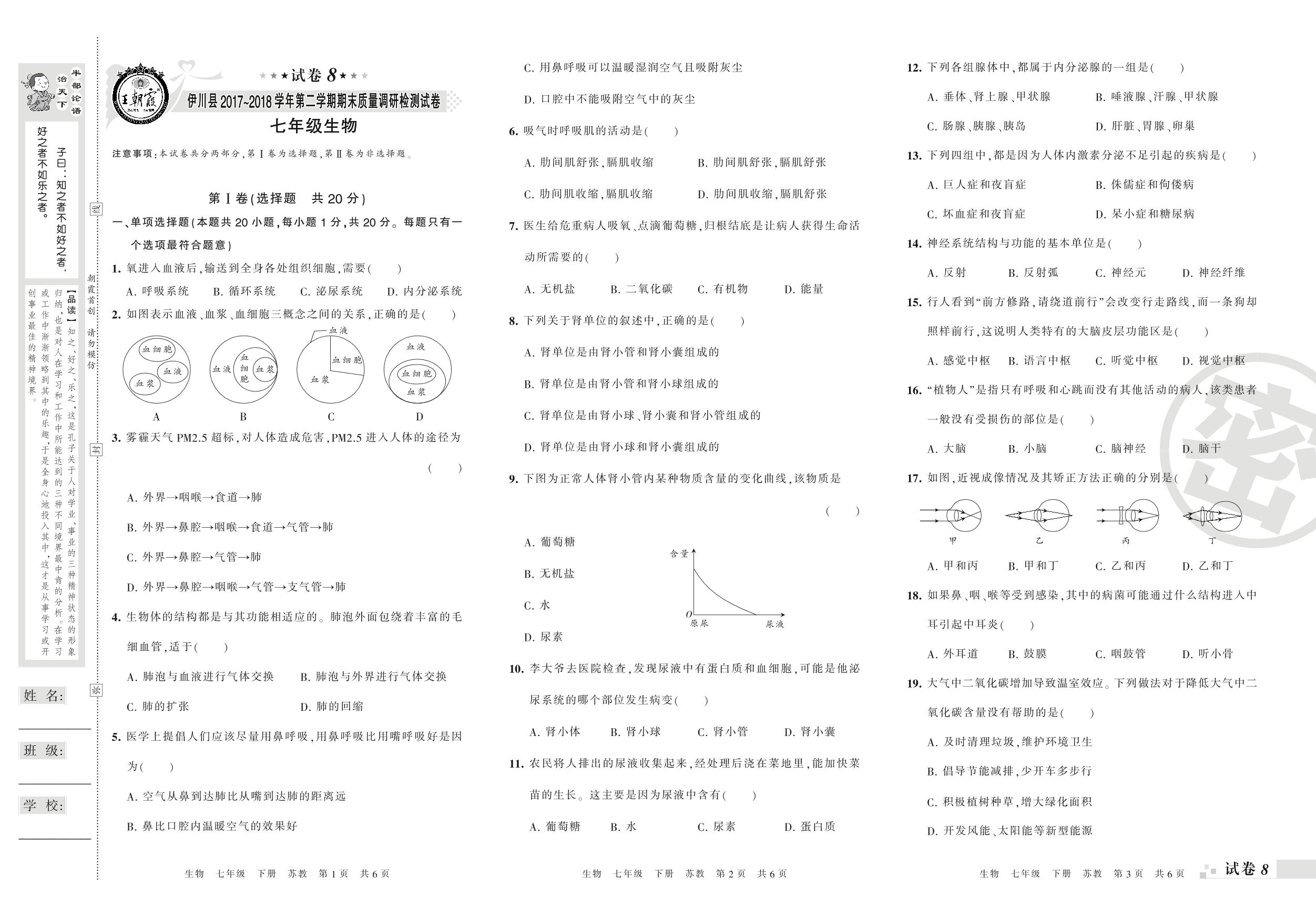 2017-2018学年第二学期洛阳市伊川县七年级生物试卷(苏教版)【8】
