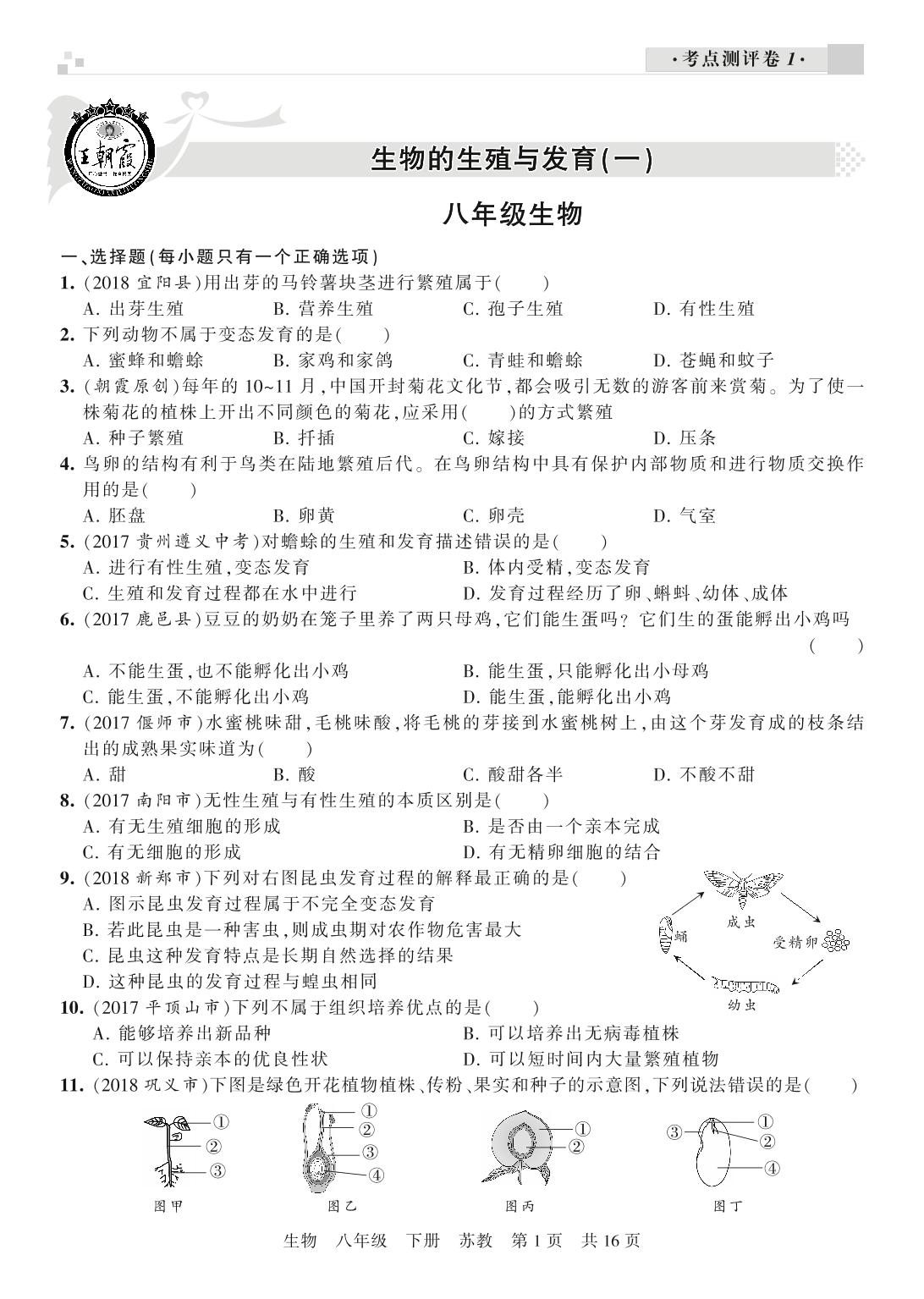 王朝霞期末小卷——考点测评卷八年级下册生物(苏教版)_R210812100610【0】