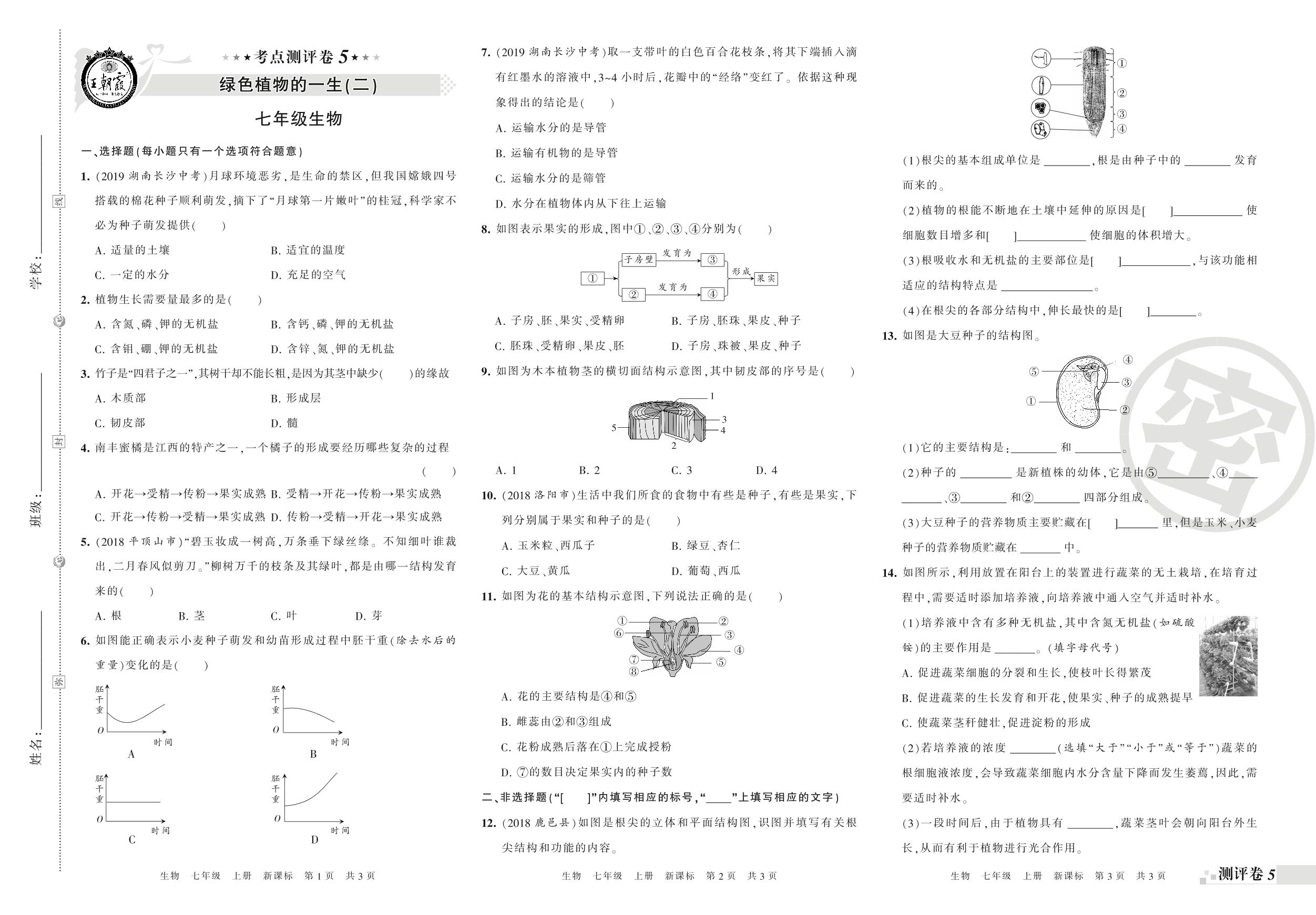 王朝霞期末考点测评卷——绿色植物的一生、绿色植物的光合作用和呼吸作用七年级上册生物(新课版)【0】