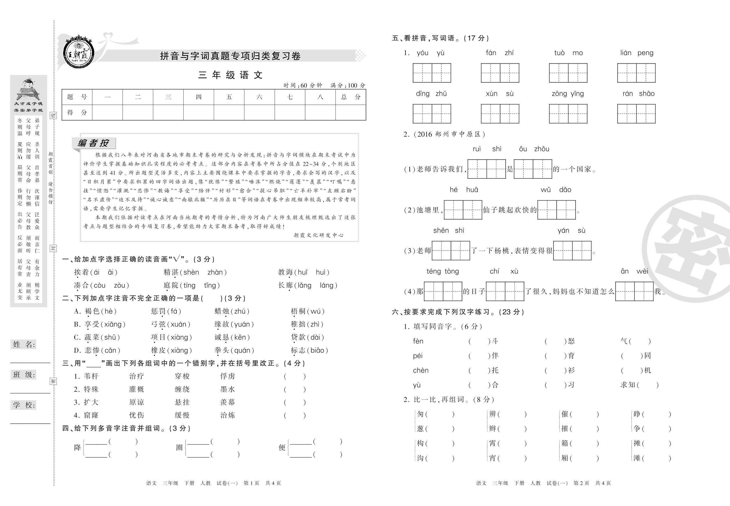 王朝霞期末专项卷三年级下册语文(人教版)_R21080194832【1】