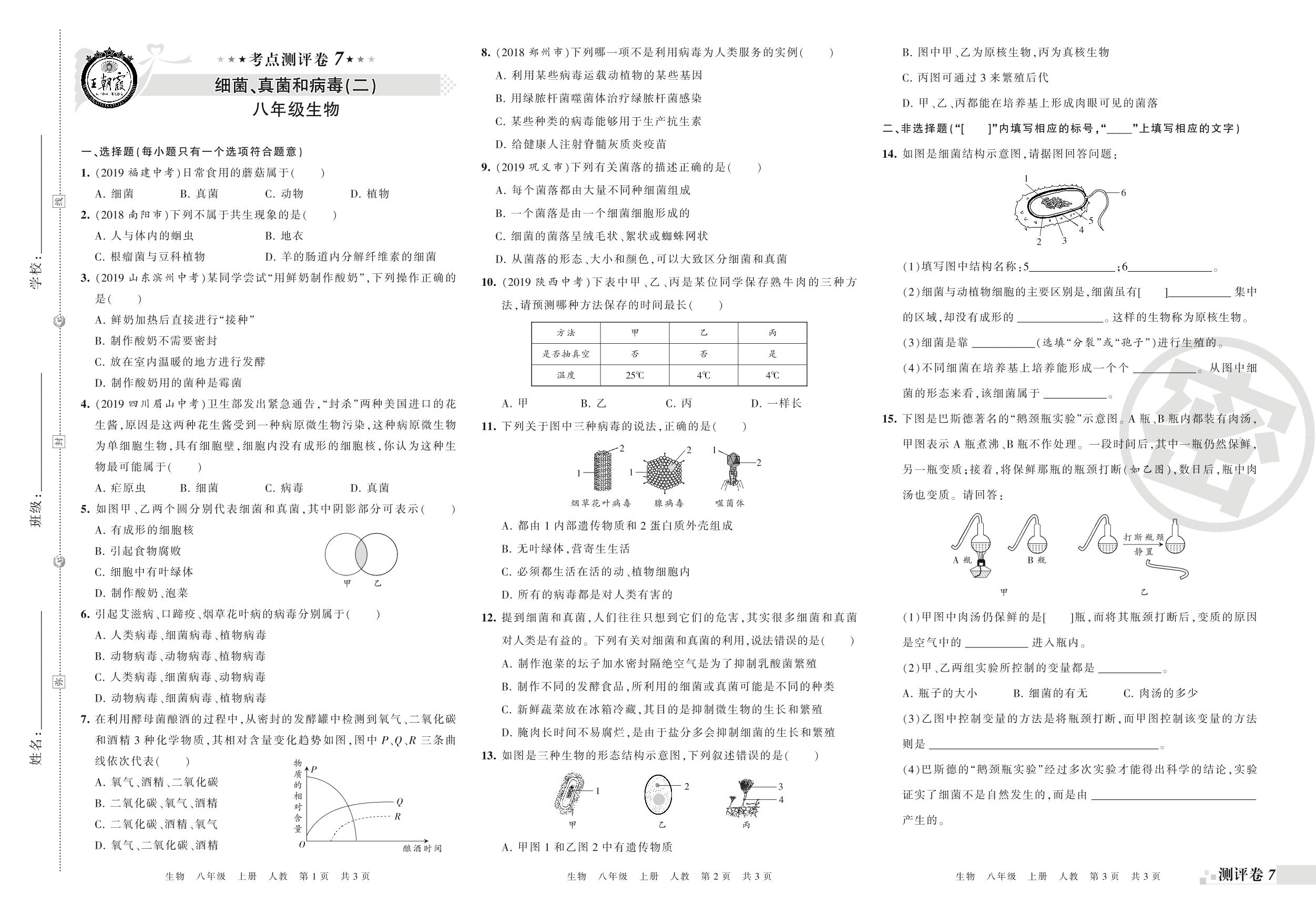 王朝霞期末考点测评卷——细菌、真菌和病毒、生物的多样性及其保护八年级上册生物(人教版)【0】