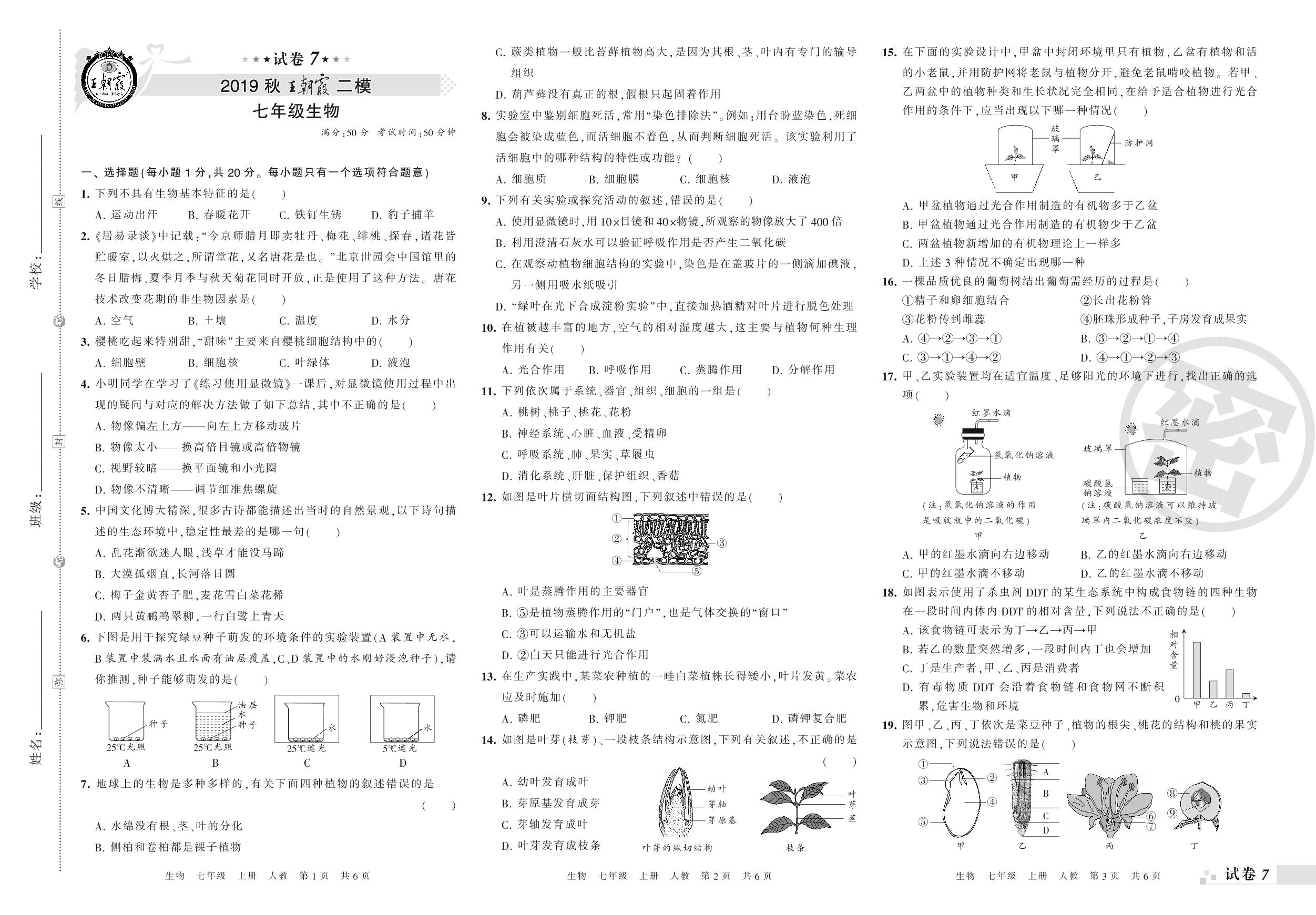 王朝霞期末模拟卷七年级上册生物(人教版)_R210812101137【7】