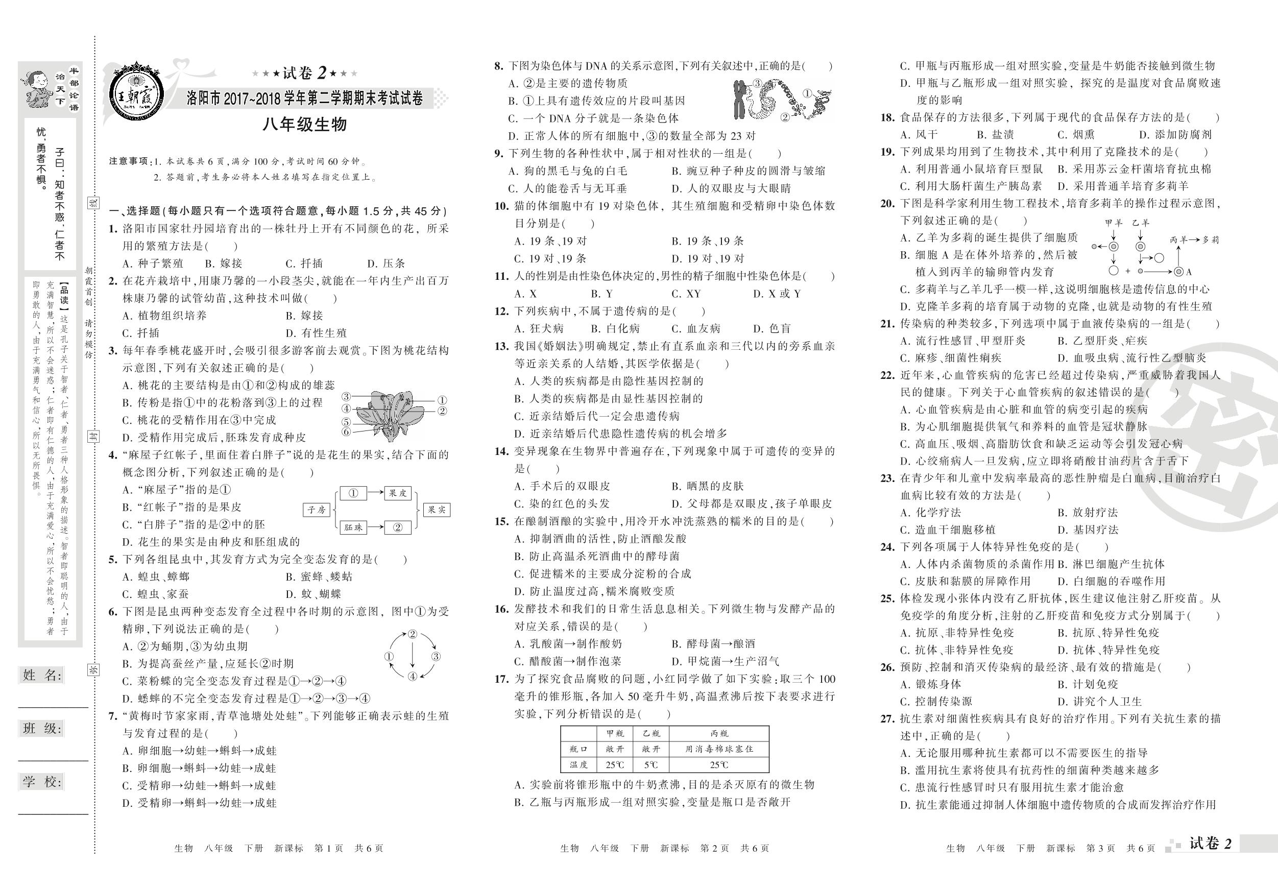 2017-2018学年第二学期洛阳市八年级生物试卷(新课版)【2】