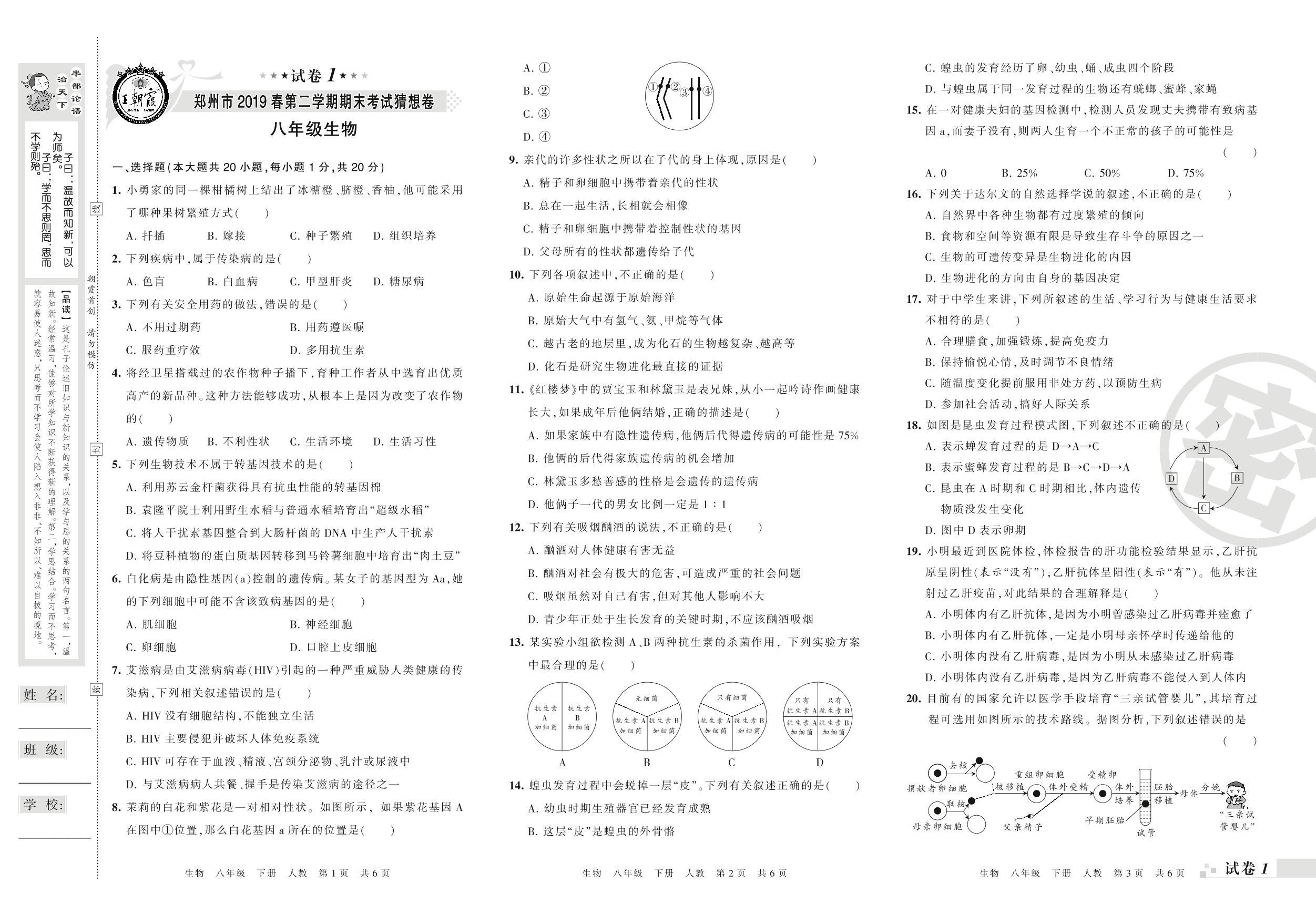 2017-2018学年第二学期郑州市八年级生物试卷(人教版)【1】