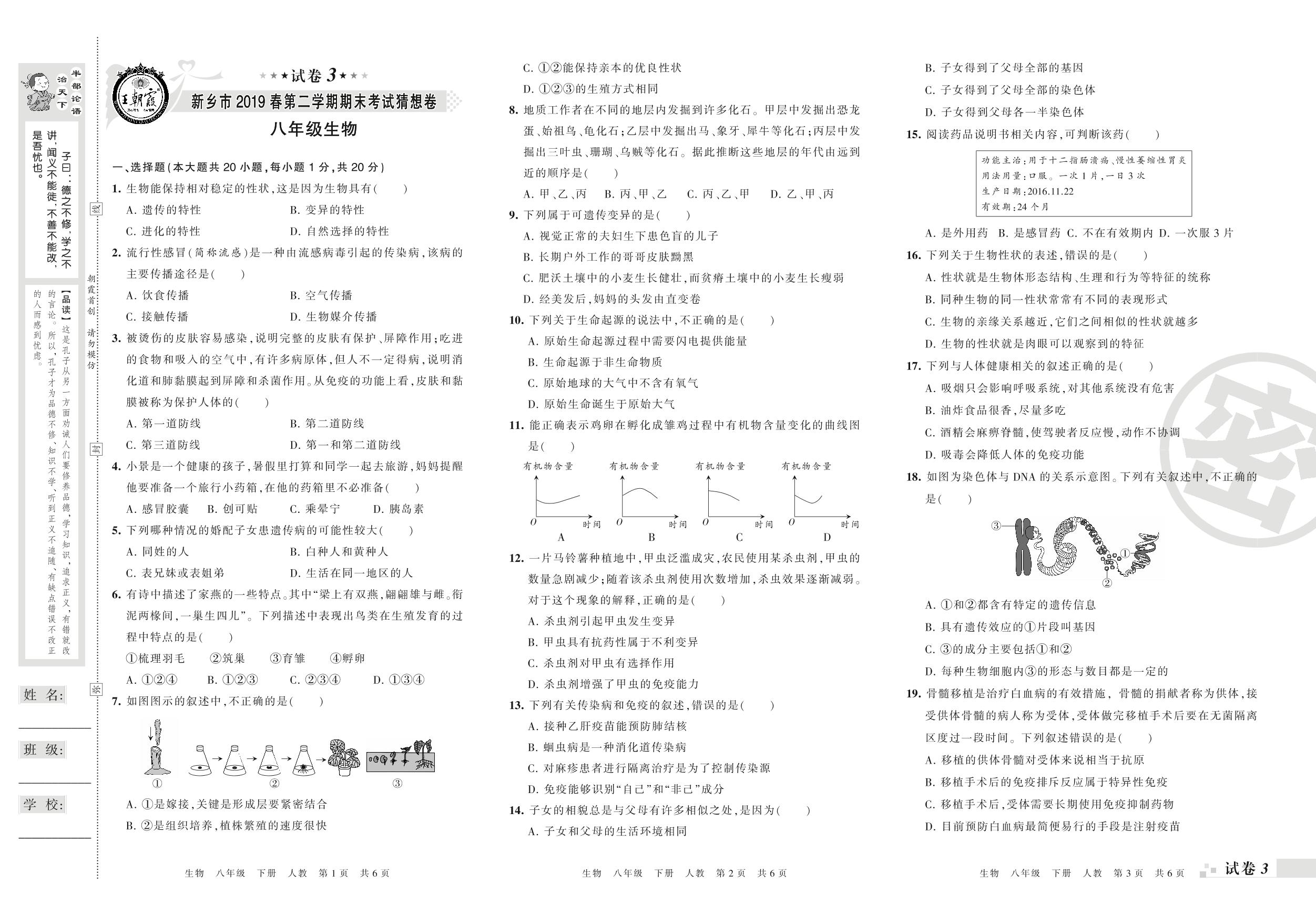 2017-2018学年第二学期新乡市八年级生物试卷(人教版)【3】