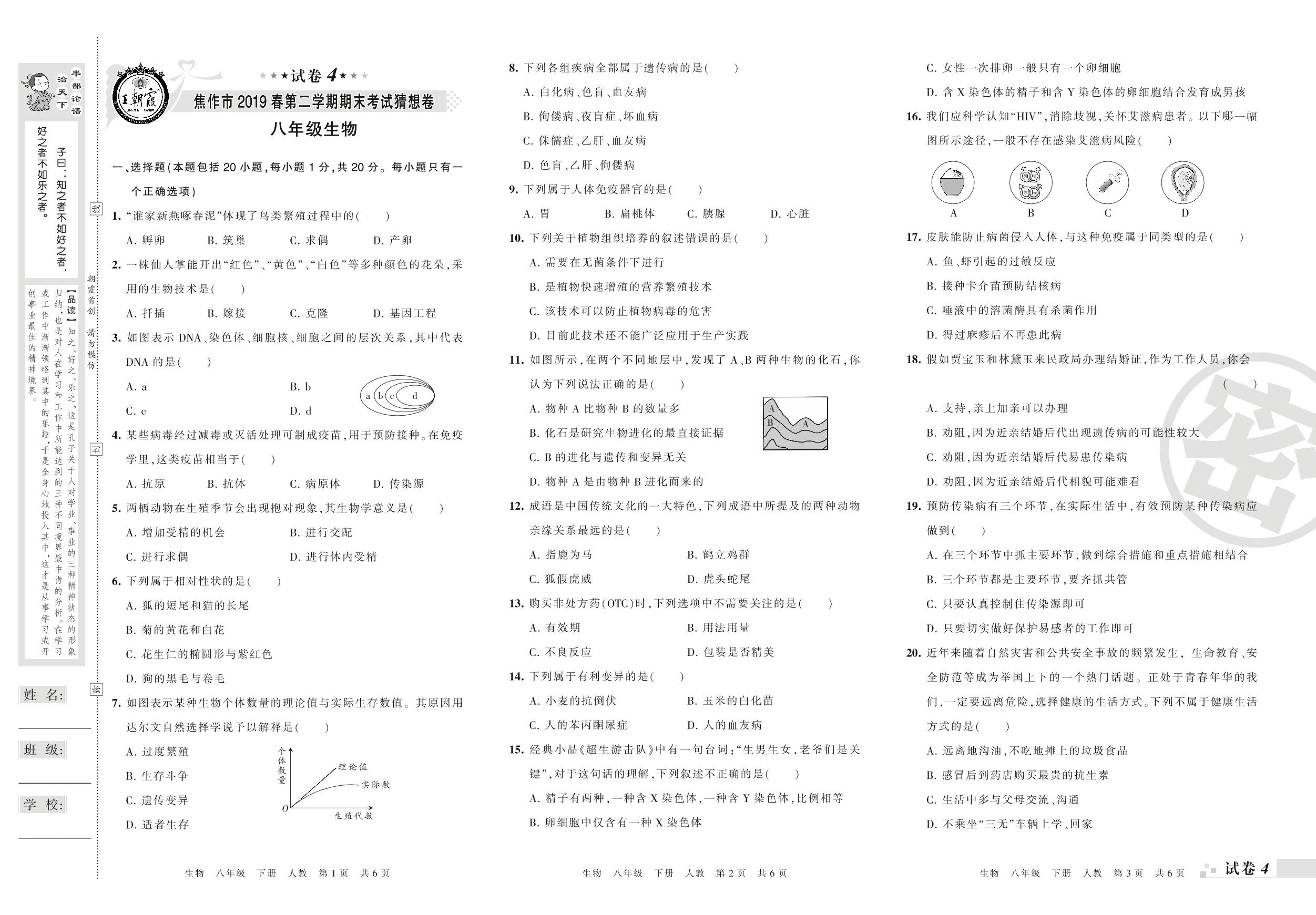 2017-2018学年第二学期焦作市八年级生物试卷(人教版)【4】