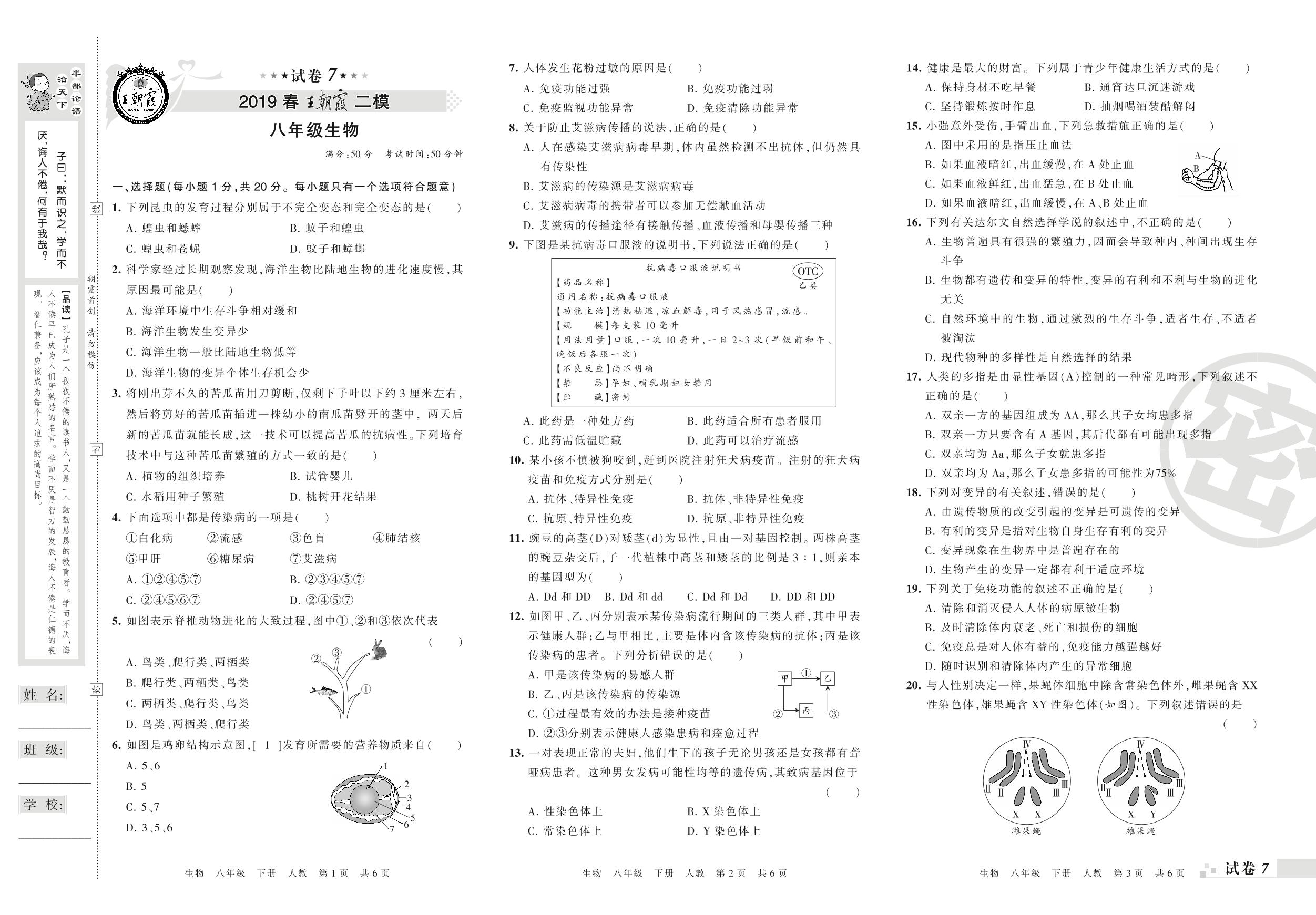 王朝霞期末模拟卷八年级下册生物(人教版)_R210812101533【7】
