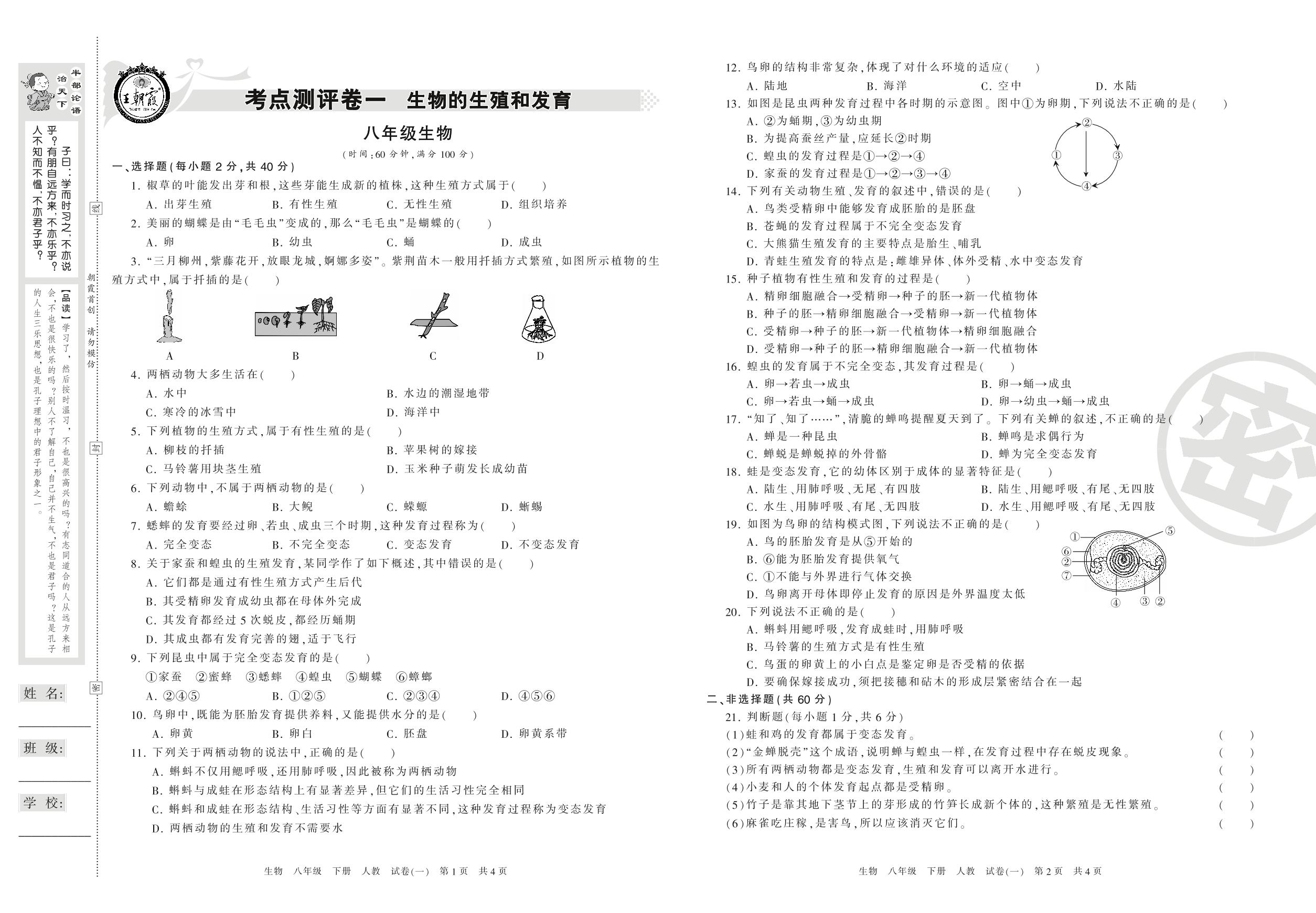 王朝霞期末测评卷八年级下册生物(人教版)【1】